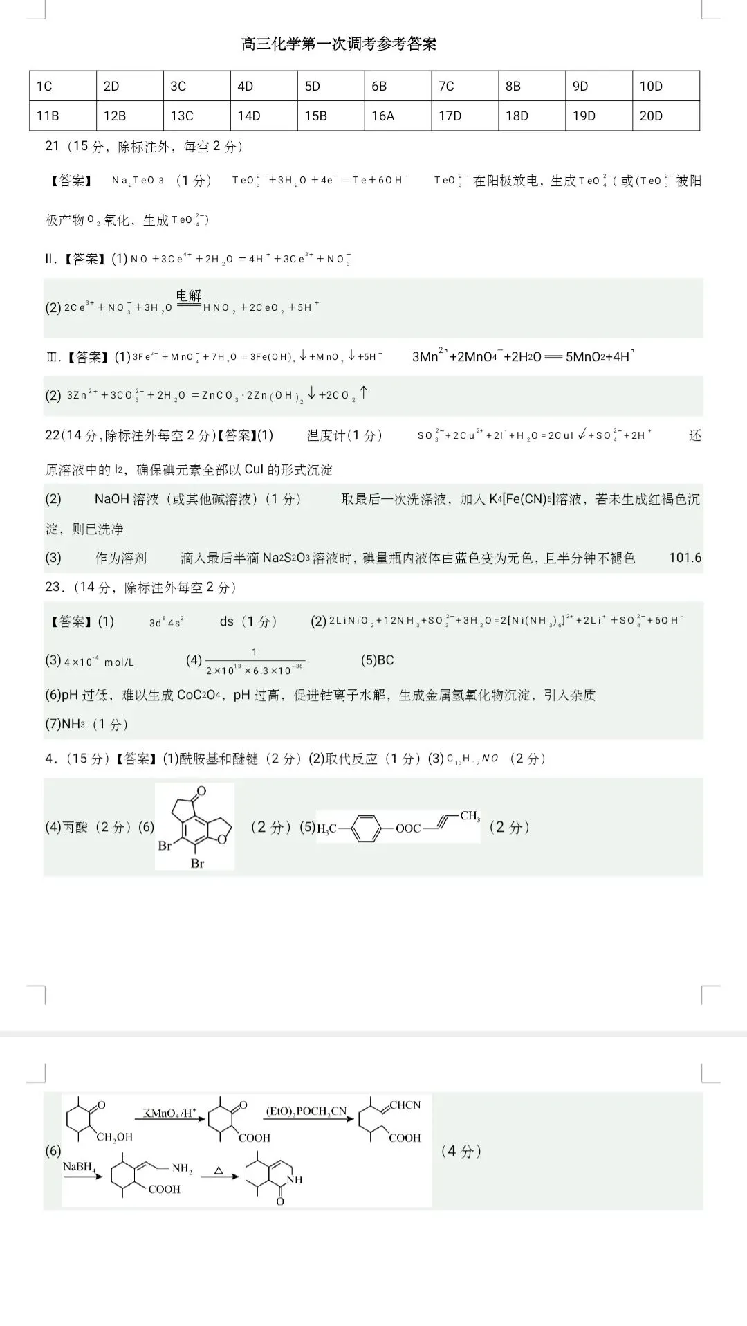 河北省石家庄市裕华区石家庄精英中学等校2025-2026年高三下学期第一次调研考试化学答案.docx