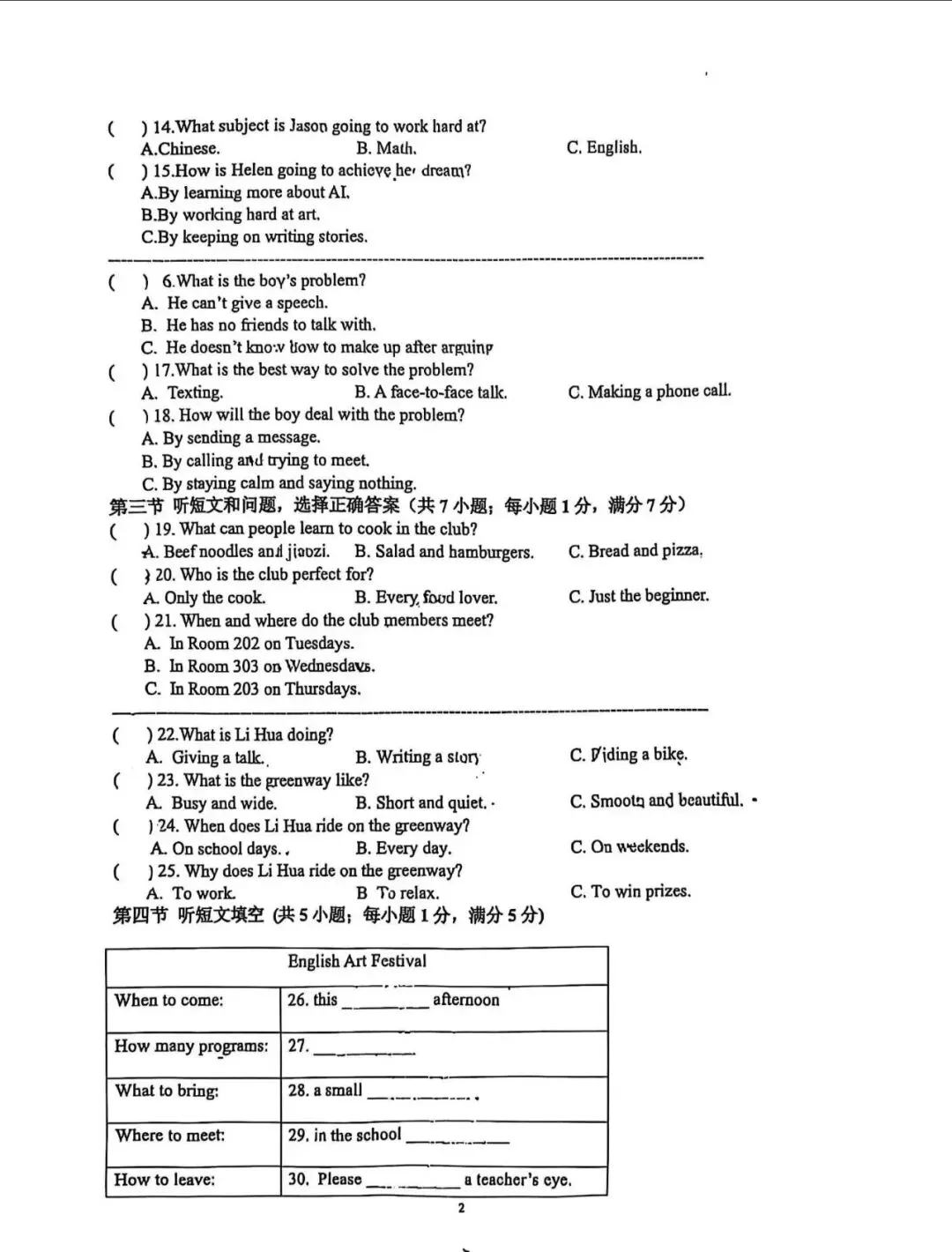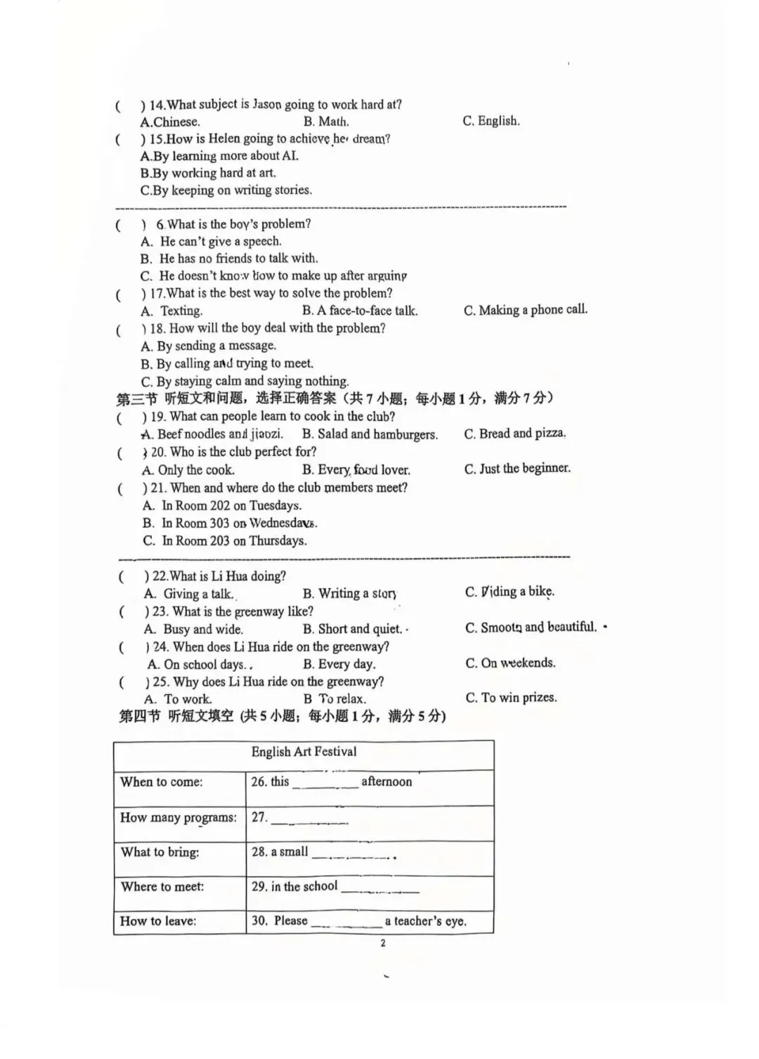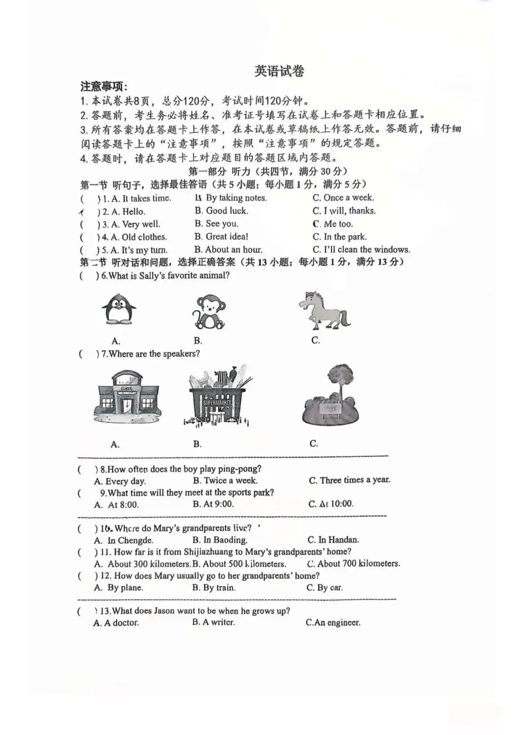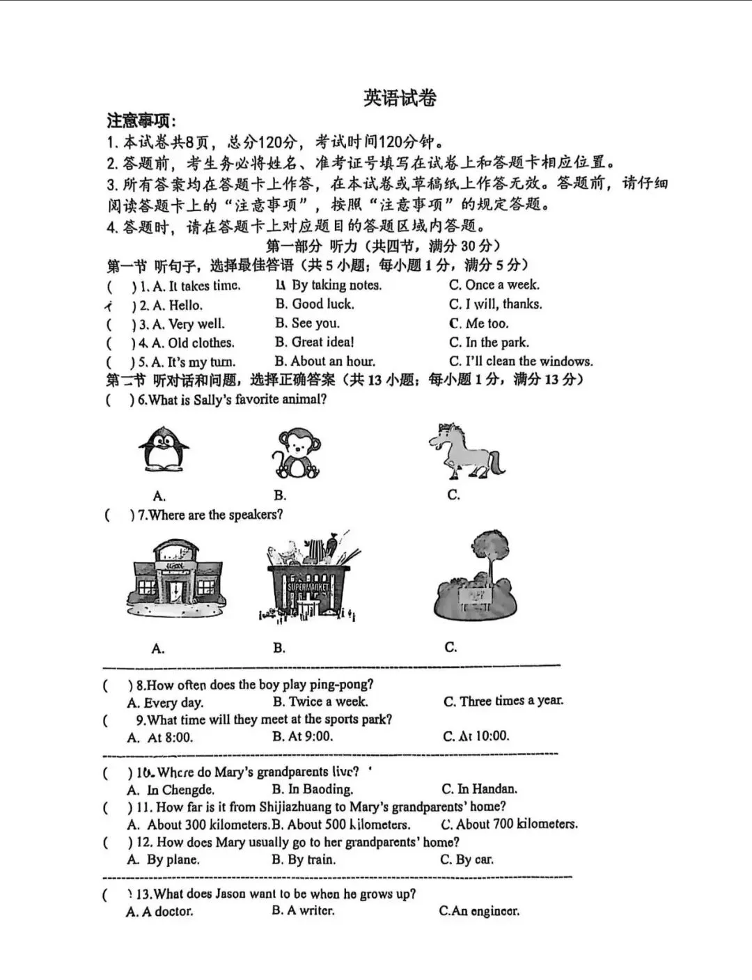 中考英语 | 2026.3河北省石家庄市裕华区中考模拟卷
