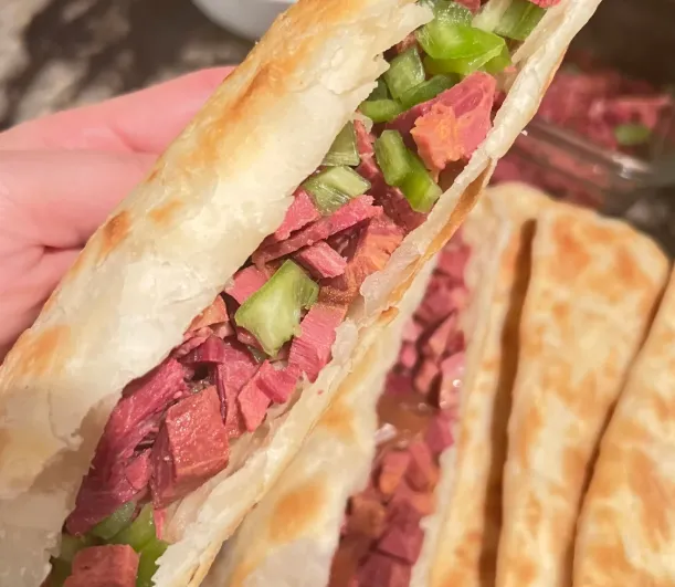 说说驴肉火烧怎么吃:火烧一般是现烤的,外壳硬一点,拿在手里会烫。师傅会从侧面划开,把卤好的驴肉切碎塞进去,有的店会浇一勺卤汤,肉香立刻更明显。你可以先不加汤,吃到一半再让他补一点,口感从干香变成润香,层次就出来了。