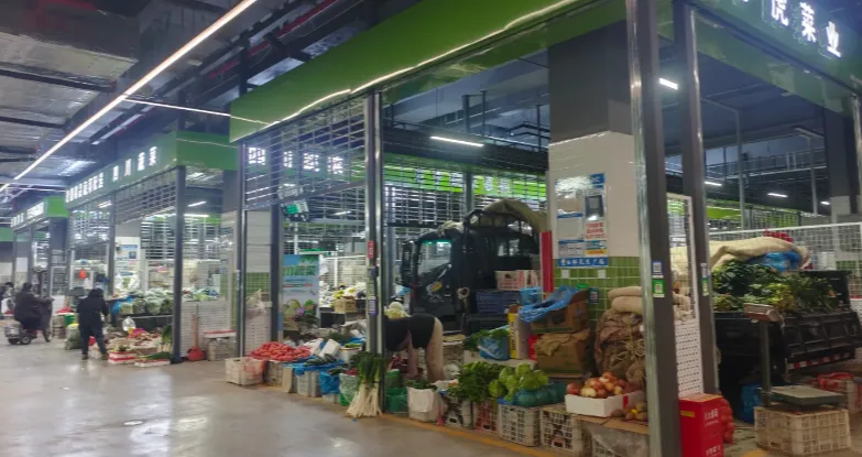 刚走到东二环和平路交口,远远就能看见这座大气的四层建筑,米白色外立面简约利落,门口停车规整有序,丝毫没有传统市场的杂乱。推门进去的瞬间,更是让人眼前一亮:地面干爽整洁,没有积水和烂菜叶,中央空调吹着暖风,冬暖夏凉太舒服;灯光柔和不刺眼,照得青菜翠绿、瓜果鲜亮,连鱼肉生鲜都透着新鲜,视觉上就格外治愈。