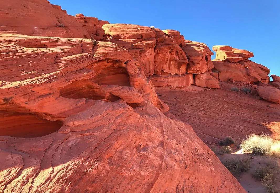 山里有个天然的回音壁,是个半圆形的山谷,你在谷底说话,回声能持续好几秒,那个声音在山谷里来回反射,确实挺震撼的。嶂石岩还有个特点是植被和地貌的反差,红色的岩壁上长着绿色的植物,形成了一种强烈的色彩对比,特别是秋天,红叶和红岩叠在一起,那个视觉效果很有冲击力。景区里有几条栈道是修在悬崖上的,走在上面能近距离看到岩层的纹理和结构,那些沉积岩的层次非常清晰,能看出上亿年地质变化留下的痕迹。