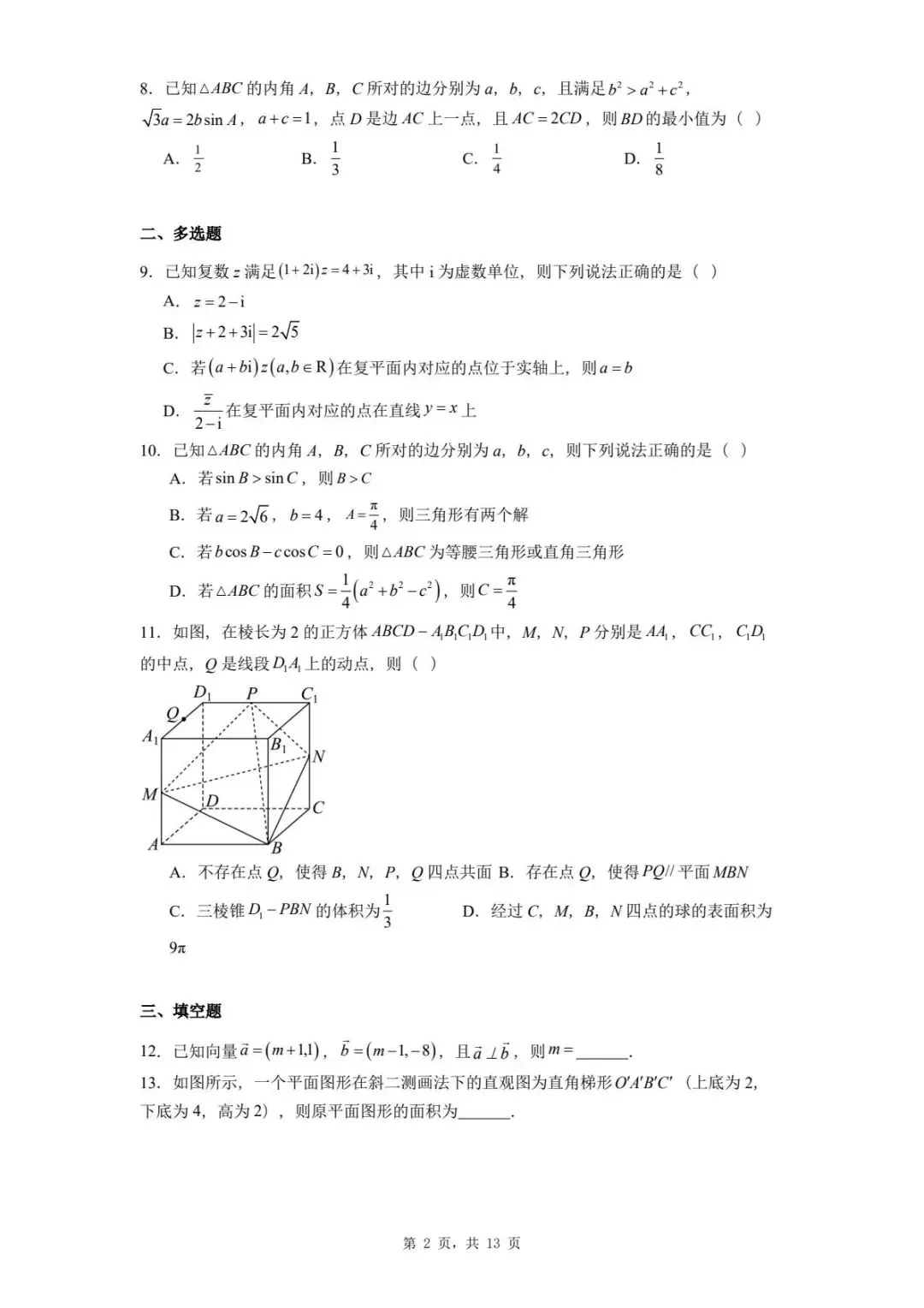 河北省石家庄市二中教育集团2024−2025学年高一下学期期中数学试题