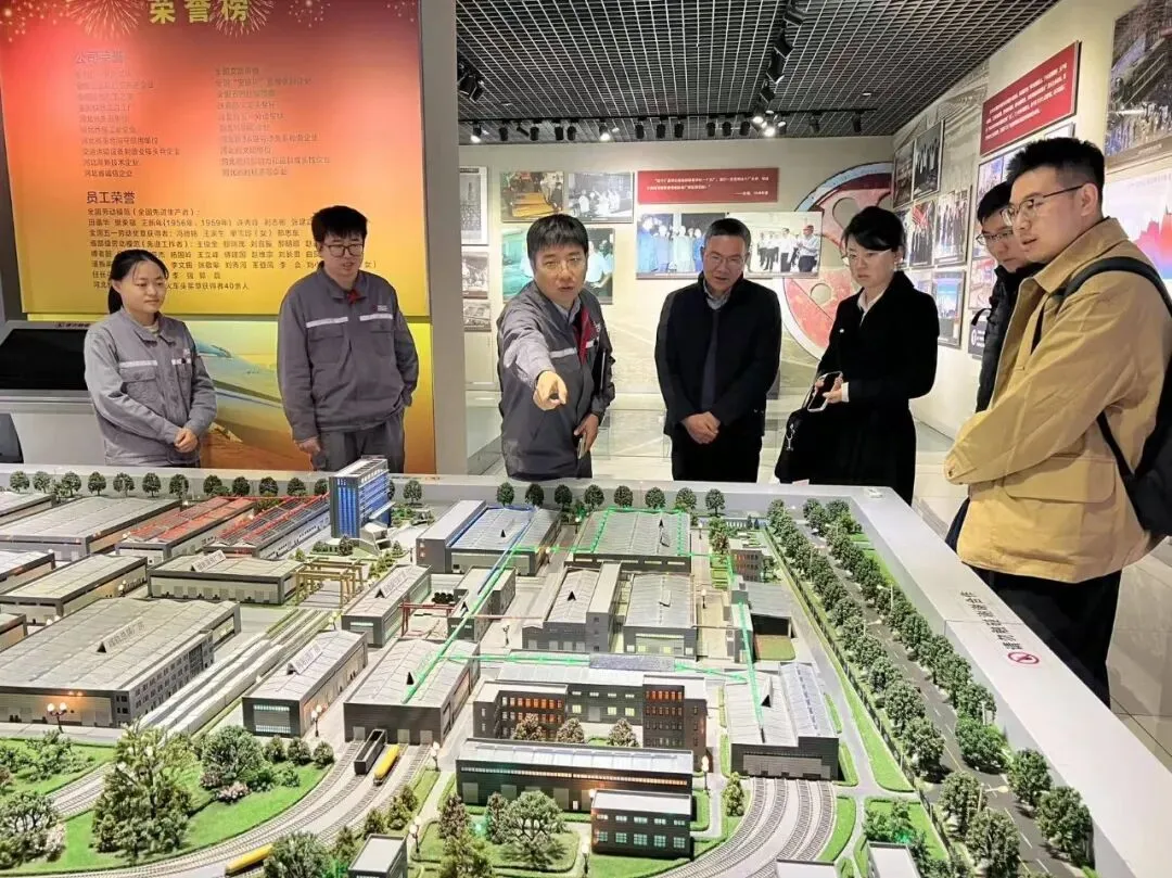 会后,调研组实地参观了企业文化展厅、转向架车间、总装车间及标准化制动室,深入了解企业文化、生产工艺及技术装备水平。