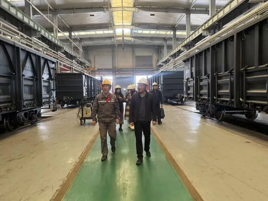 调研组首先抵达中车石家庄车辆有限公司。公司党委副书记朱泽红对吴刚院长一行表示热烈欢迎,并详细介绍了企业的发展历程、产业布局及技术创新成果。作为中国中车全资子公司,石车公司在铁路货车、冷链运输装备及城市交通装备的研发制造与维保服务等领域积淀深厚。朱泽红重点分享了企业在关键技术突破与市场应用方面的实践经验。
