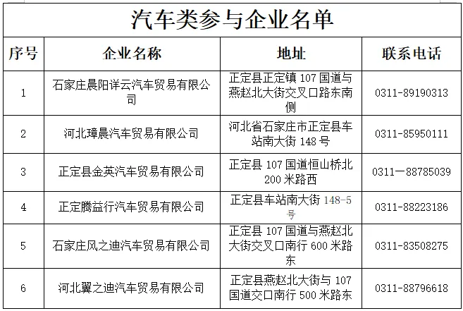 活动车企:石家庄晨阳详云汽车贸易有限公司、河北璋晨汽车贸易有限公司、正定县金英汽车贸易有限公司、正定腾益行汽车贸易有限公司、石家庄风之迪汽车贸易有限公司、河北翼之迪汽车贸易有限公司