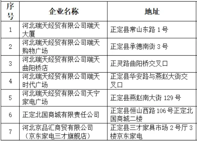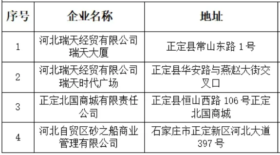 活动企业商超:河北瑞天经贸有限公司(所属直营店)、正定北国商城有限责任公司、河北京品汇商贸有限公司、河北自贸区砂之船商业管理有限公司。
