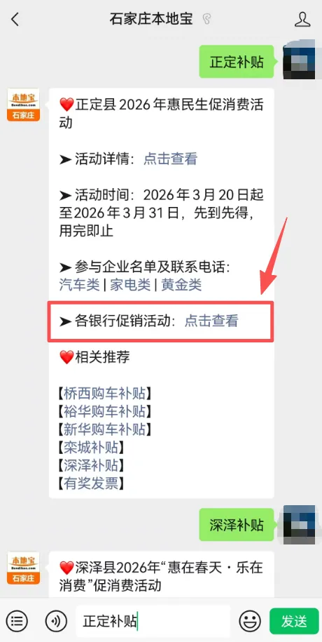 扫描或长按识别下方二维码,关注【石家庄本地宝】公众号,私信回复【正定补贴】,即可获取各银行促销活动。