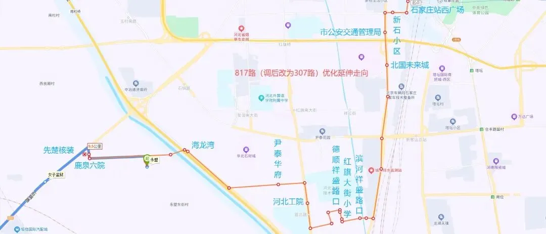 3、调后路径: 石栾大街、鑫源路、新开街、宏达路、太行大街、栾武路、石栾大街、仓宁路、谈固大街、方兴路、翟营大街、仓丰路、体育大街、仓裕路、裕翔街、仓丰路、胜利大街。