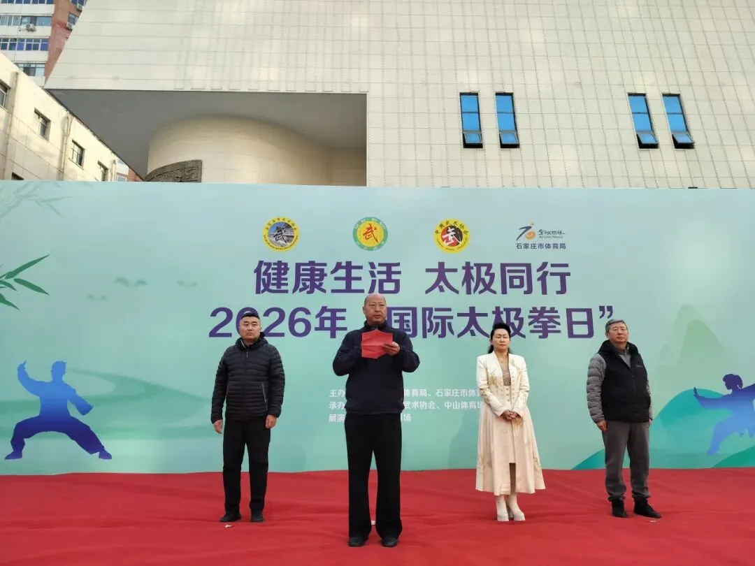根据国家及省市有关部门关于举办首个“国际太极拳日"主题展演活动通知精神,石家庄市体育局.石家庄市武术协会决定3月21日在中山路体育场举办大型太极展演。8时整,6个区720名太极队员身着统一的白色太极服,在表演场地整齐列队,石家庄市武术协会主席杨合发致辞,石家庄市体育总会王新主任宣布:石家庄市首个“国际太极拳日"主题展演开始!