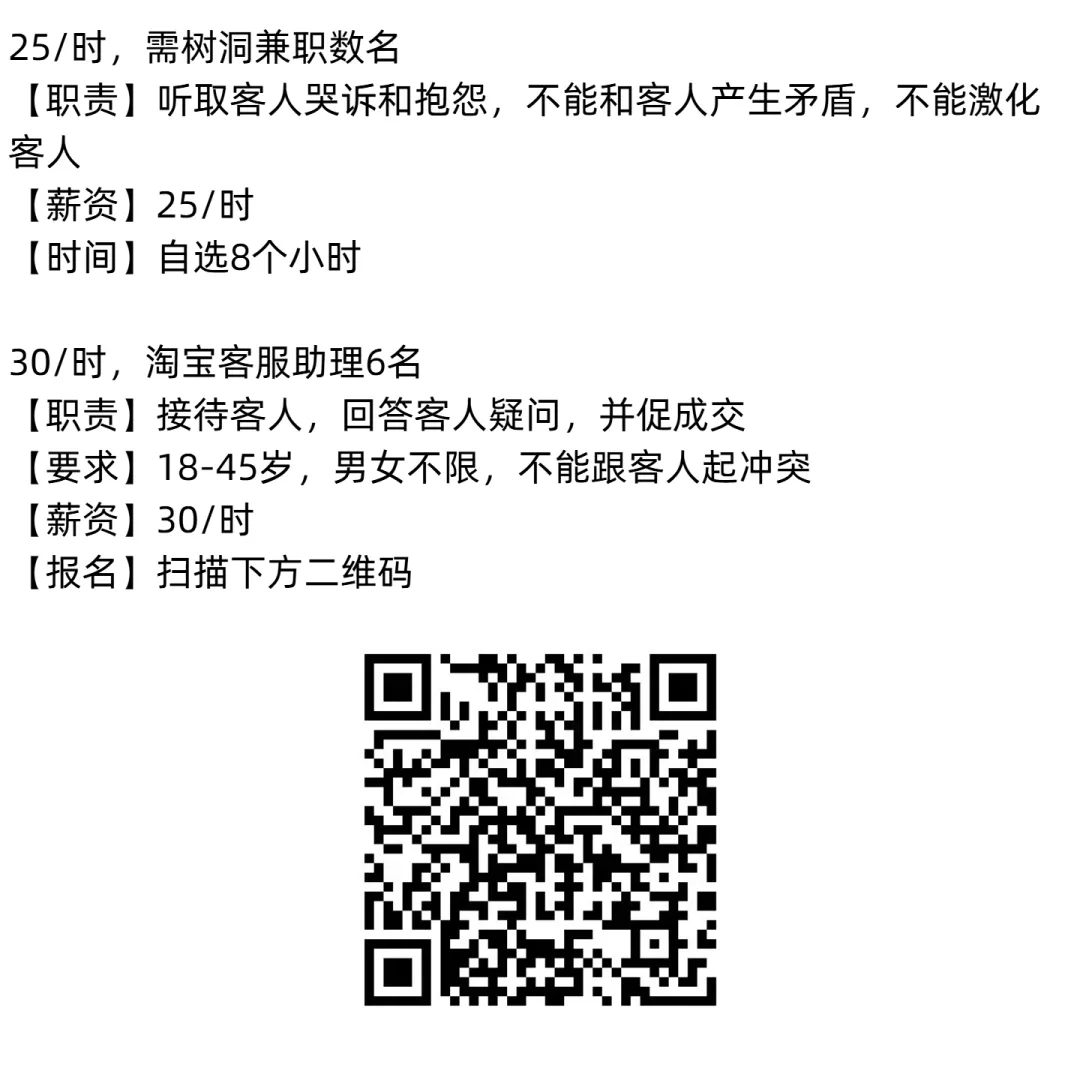待遇:女10-12元每小时,男13-15每小时
