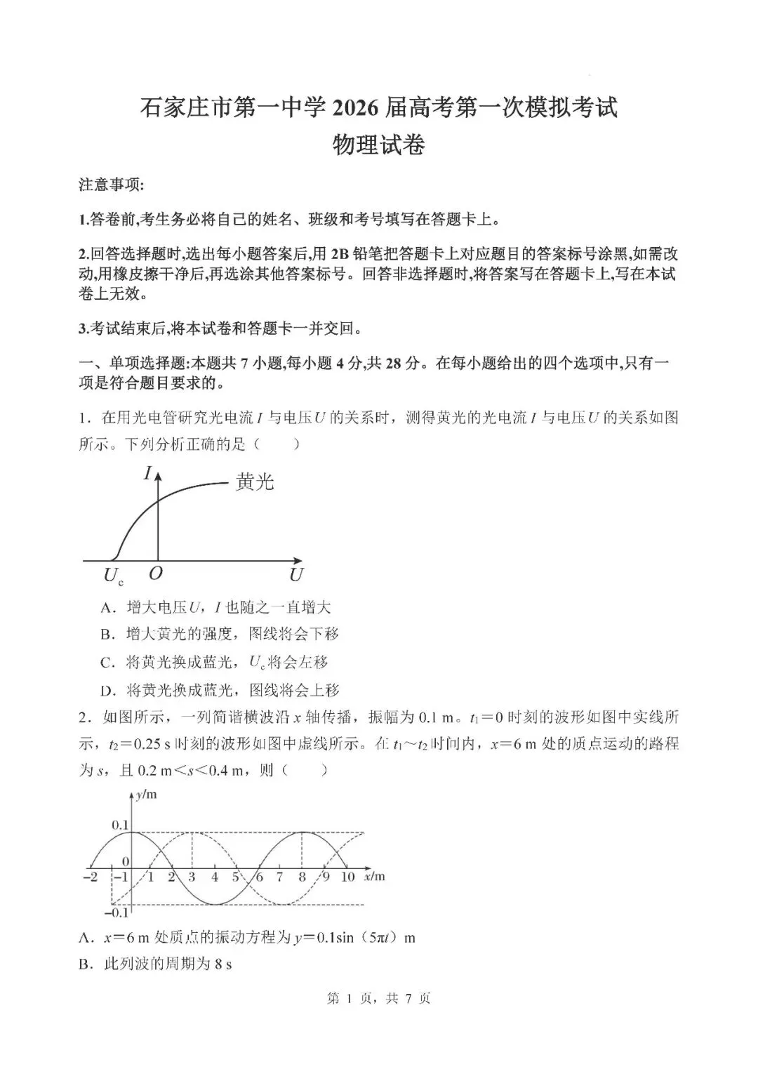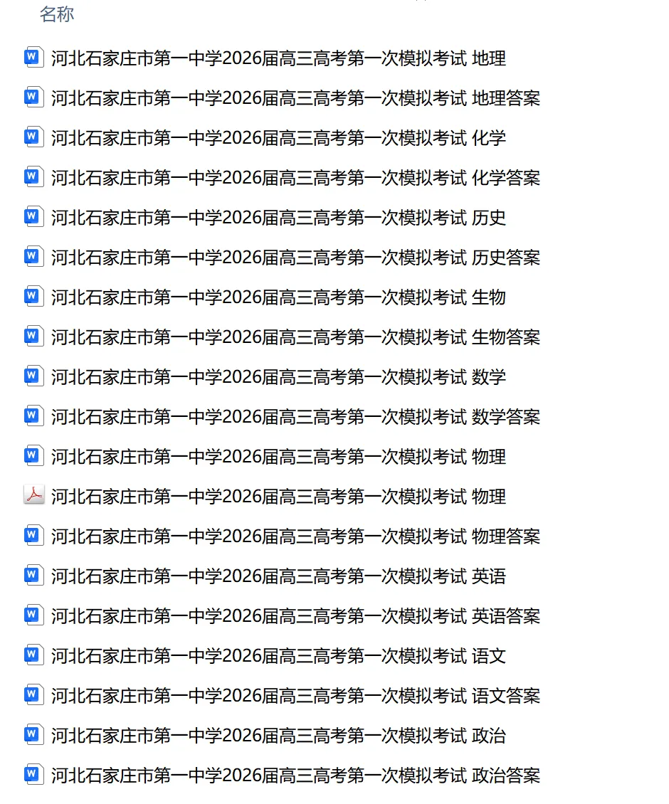 【河北卷】河北石家庄市第一中学2026届高三高考第一次模拟考试