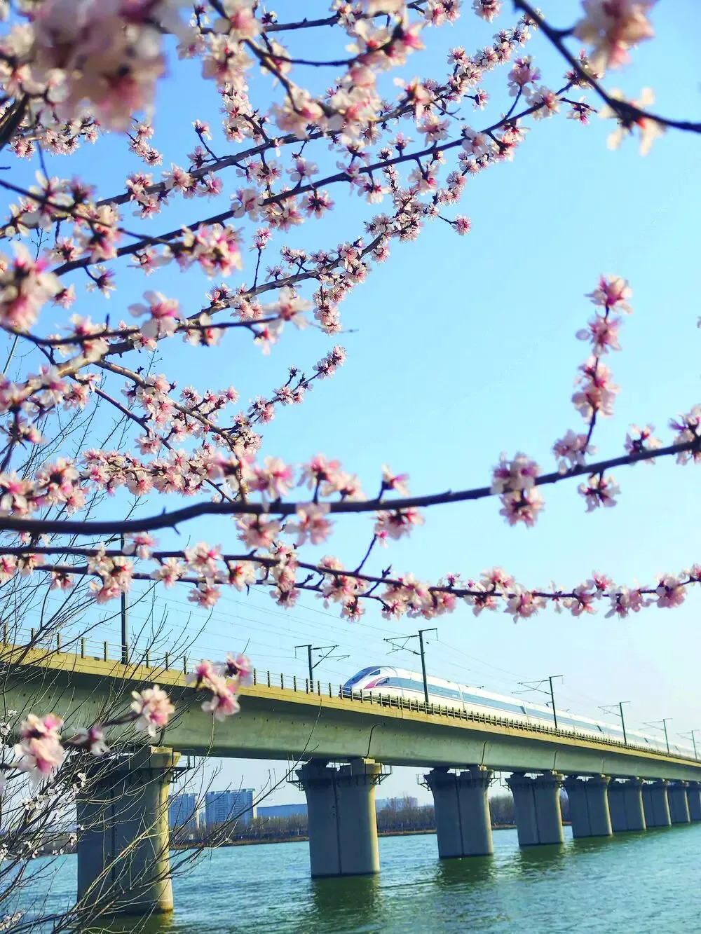 最引人注目的当属滹沱河艺术生态岛,跨滹沱河大桥上一列高铁疾驰而过,恰与两岸花海构成一幅动感画卷。众多游客纷纷举起手机抢拍,有人兴奋地喊道:“这是驶往春天的列车!”从公园到河畔,从花下到桥边,石家庄处处洋溢着春的气息,人们用各自的方式拥抱这个生机盎然的季节。