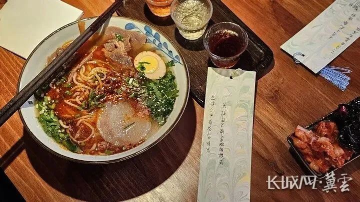 “无声面馆”里的牛肉面和手写祝福卡。长城网·冀云客户端记者 闫思宇 摄
