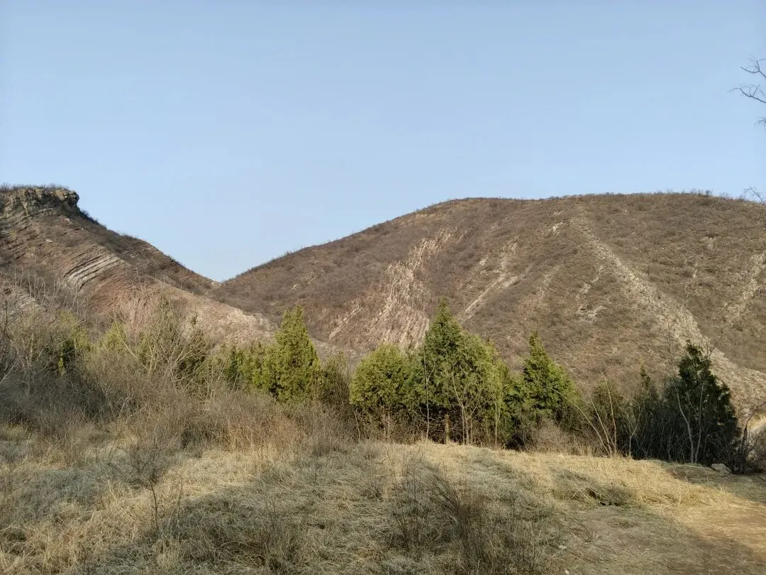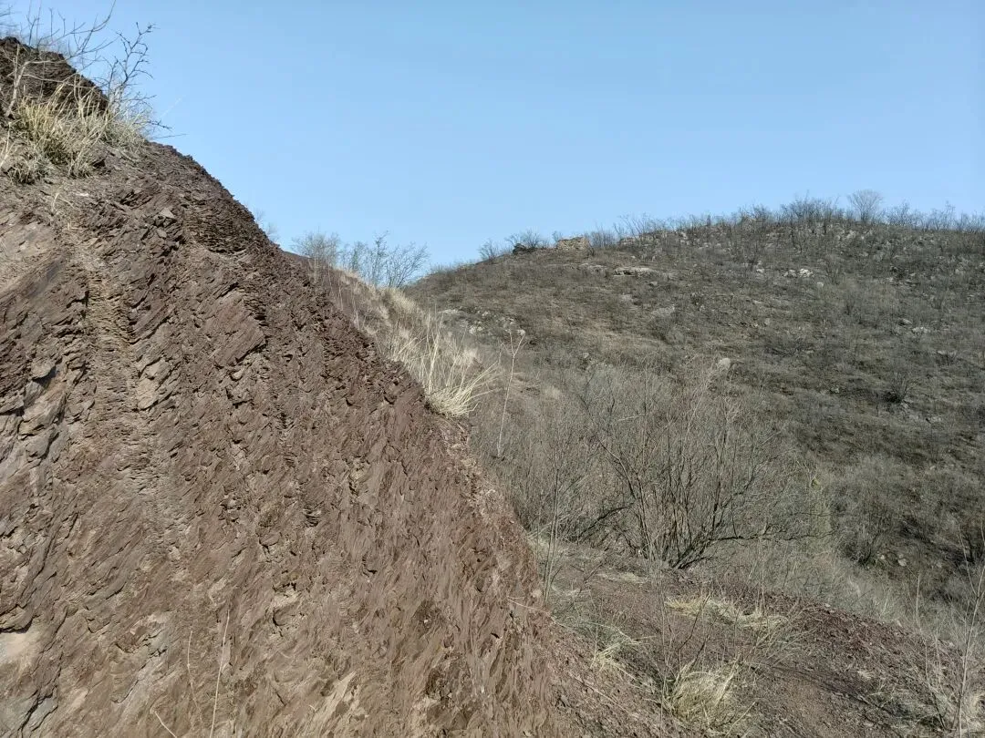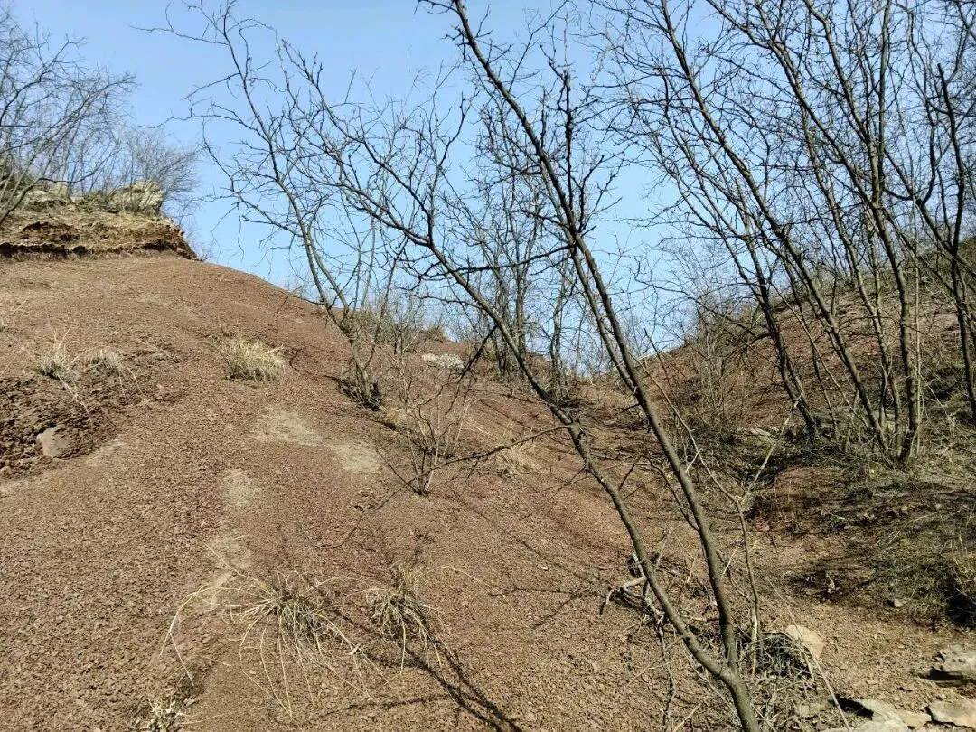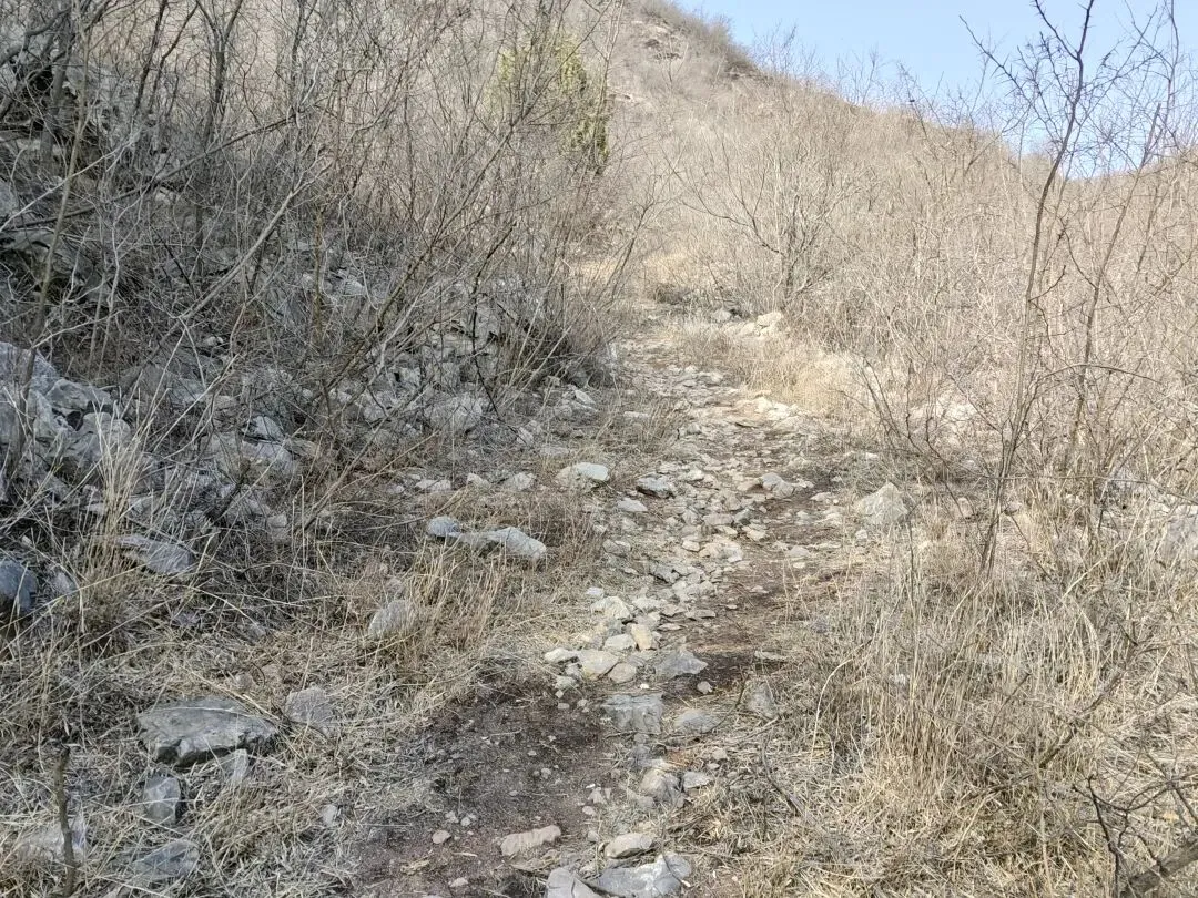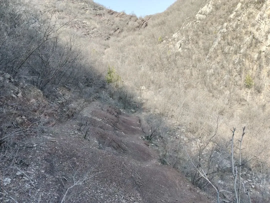 在山沟里踩着风化了的石头碎屑徒手上山,不行就顺手扯树拉枝来借把力~