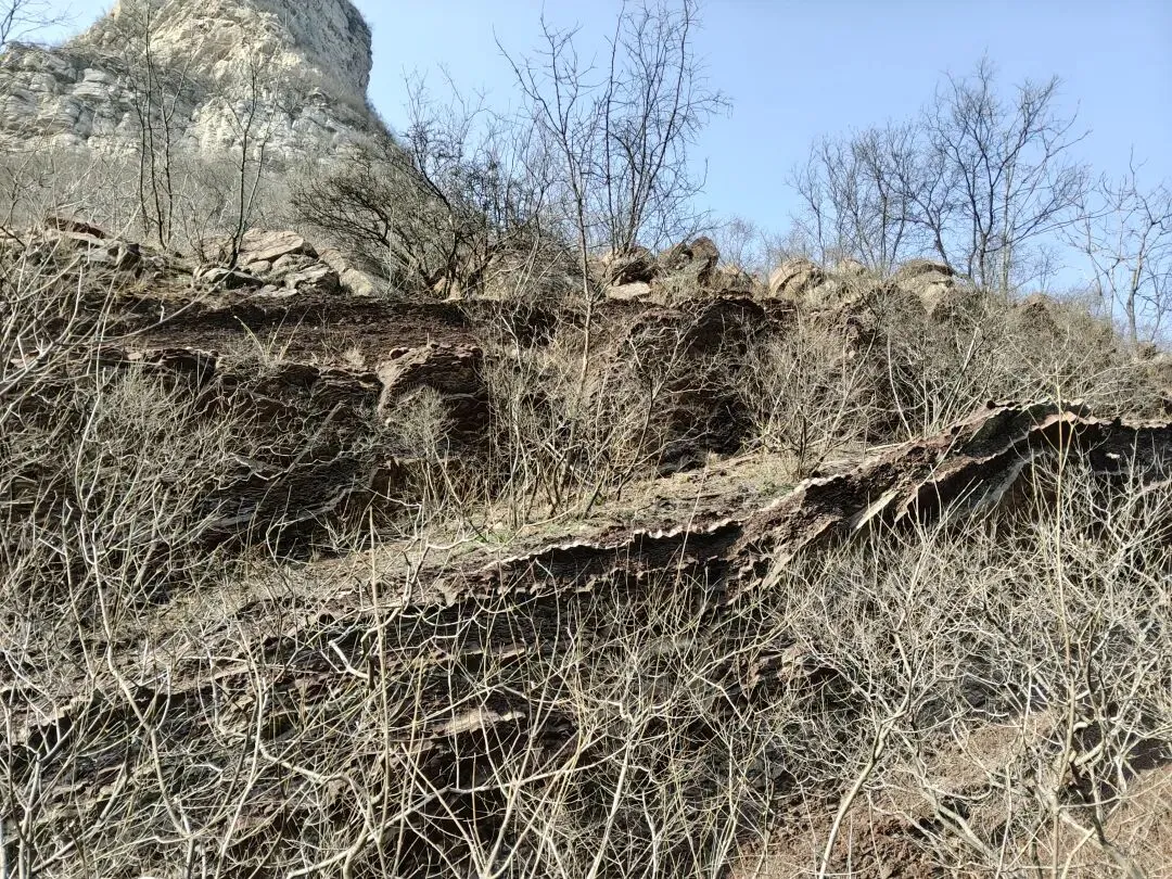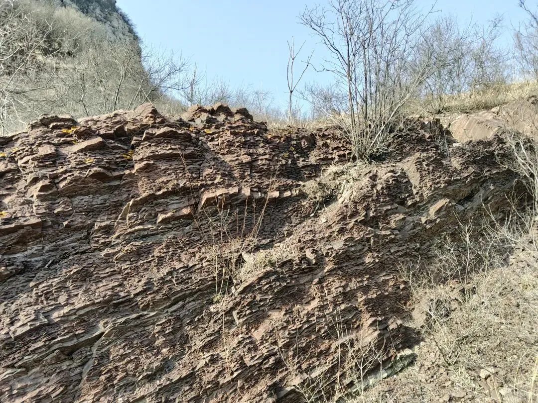 这山上的石头太有特点了,一层一层的棕红色,好看