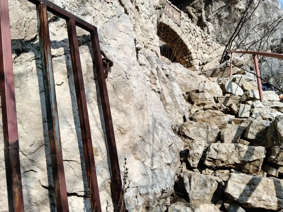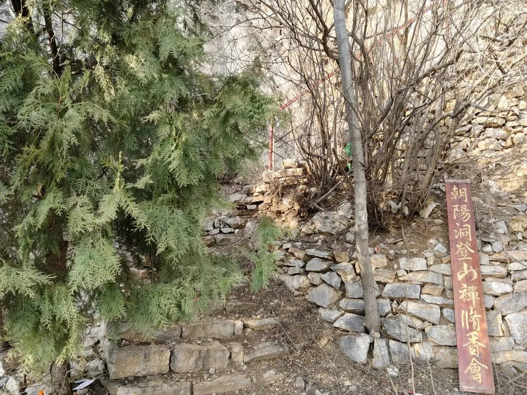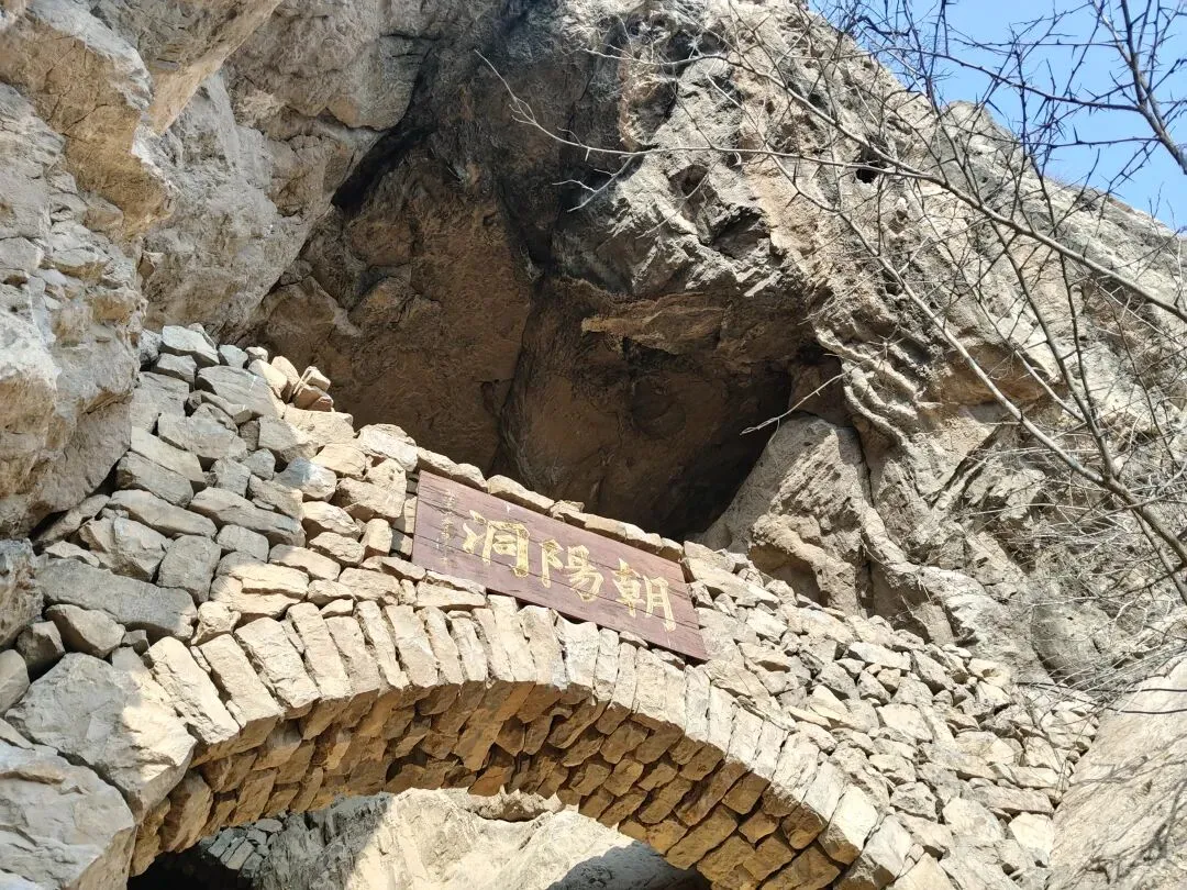 到了!上面是个平台,右手边洞上面写着:朝阳洞。我大喊:到了!上来吧!拐个弯就到了!老师傅回声:好!