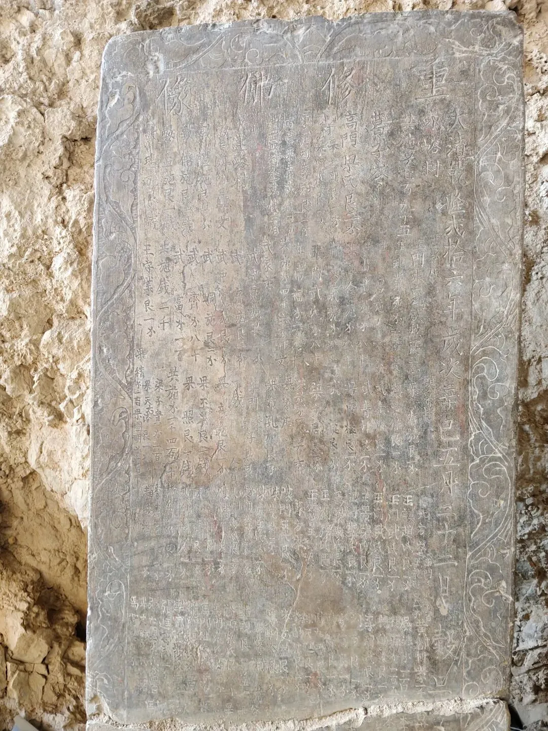 朝阳洞内有佛像,有重修佛像石碑