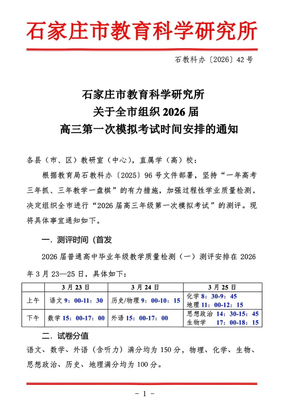 考试名称:石家庄一模石家庄市2026届普通高中毕业年级教学质量检测(一)