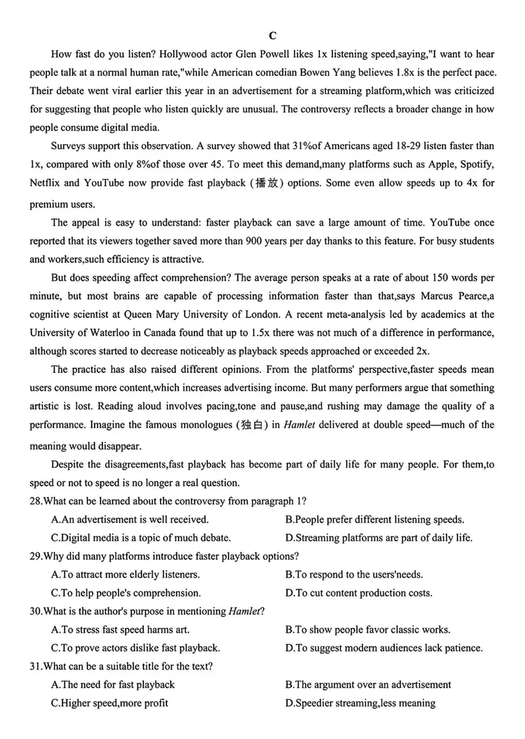 🔝试题及解析查看↑