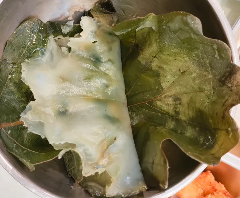 桲椤叶饼挺有地方味。把玉米面和少量白面和匀,包进韭菜鸡蛋或肉馅,再用桲椤叶一裹,上锅蒸。叶子的清香会慢慢沁进去,外皮不黏牙,带点粗粮的颗粒感,咬开是软的,也有回甘。