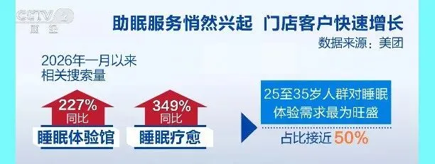 数据显示,从今年1月以来,“睡眠体验馆”相关搜索量同比增长227%,“睡眠疗愈”搜索量同比增长349%。其中,25岁至35岁人群对睡眠体验需求最为旺盛,占比接近50%。