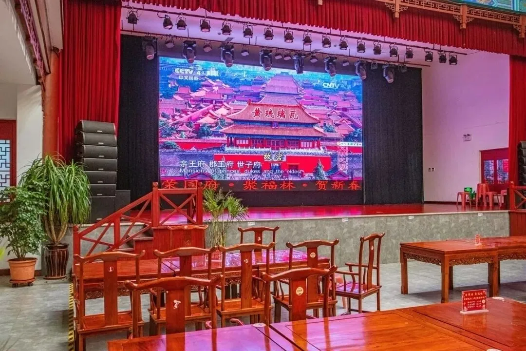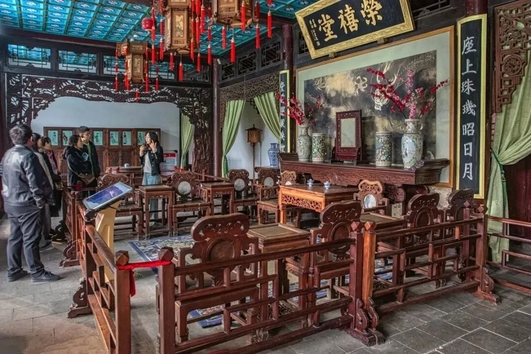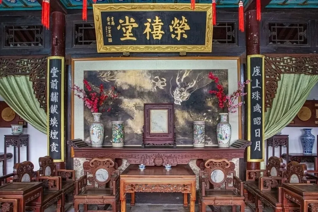 续前。下图是贾政的公务厅荣禧堂,正面墙上有幅墨龙