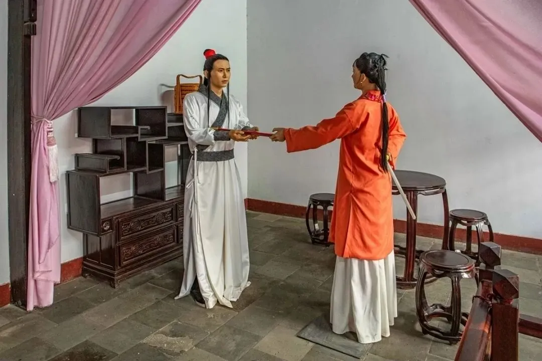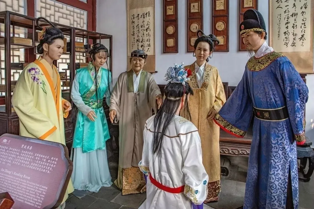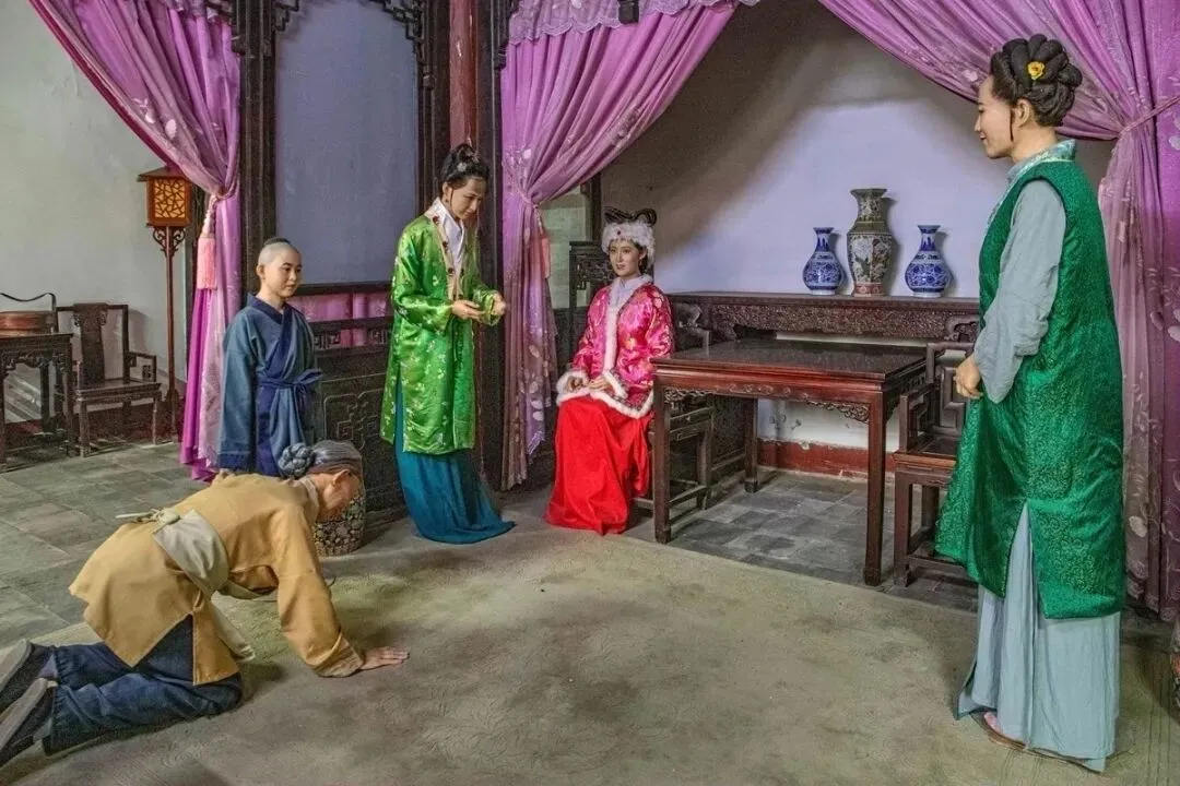 贾宝玉犯错了,要打屁股。这里的几个塑像制作得还可以。