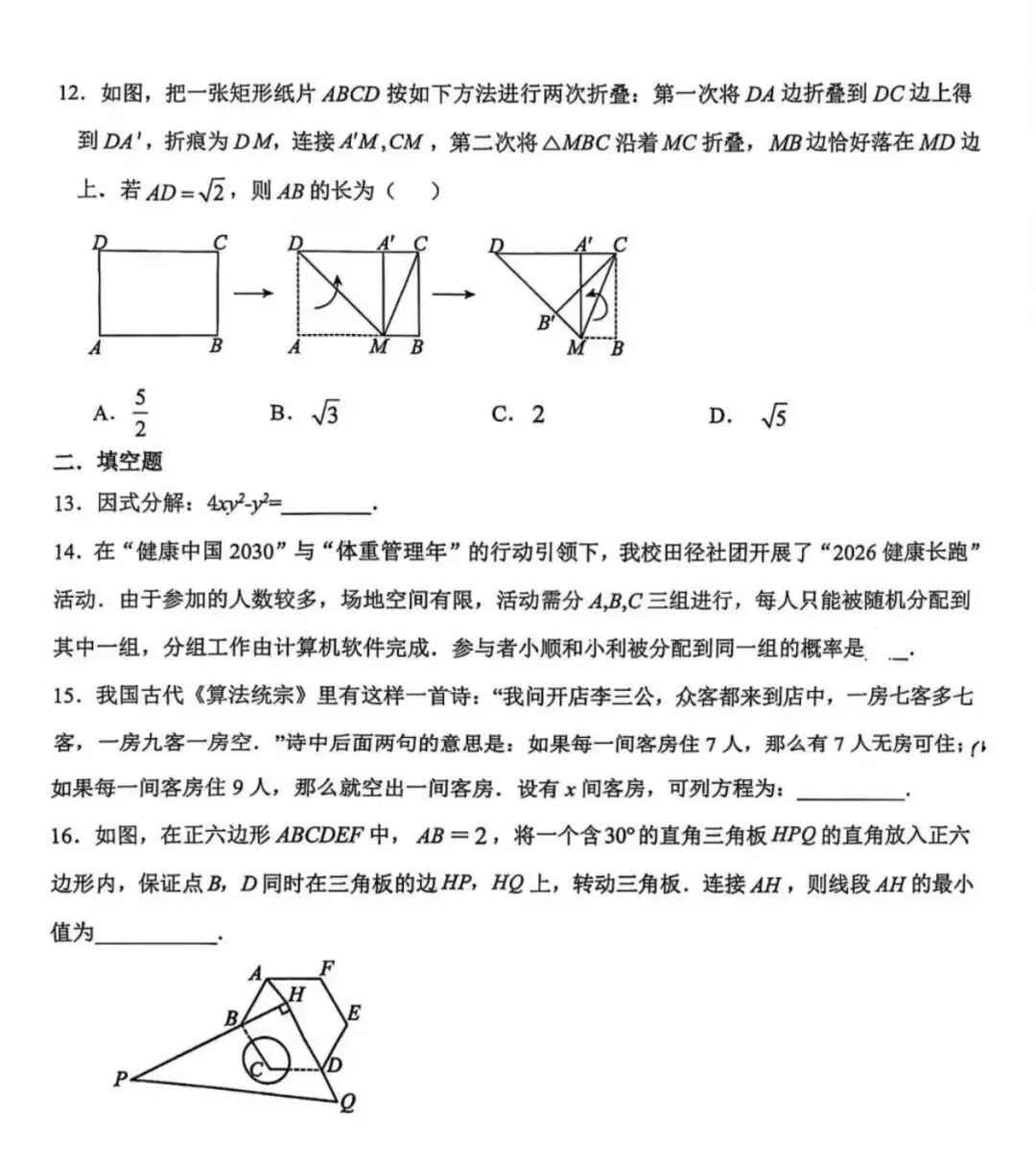 2026.1河北省九年级结课考试数学试卷