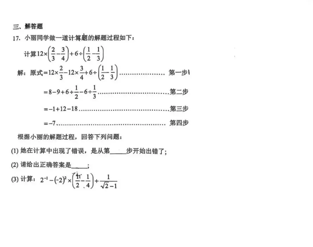 26.1河北省期末考试七年级数学试卷含答案(冀教版)