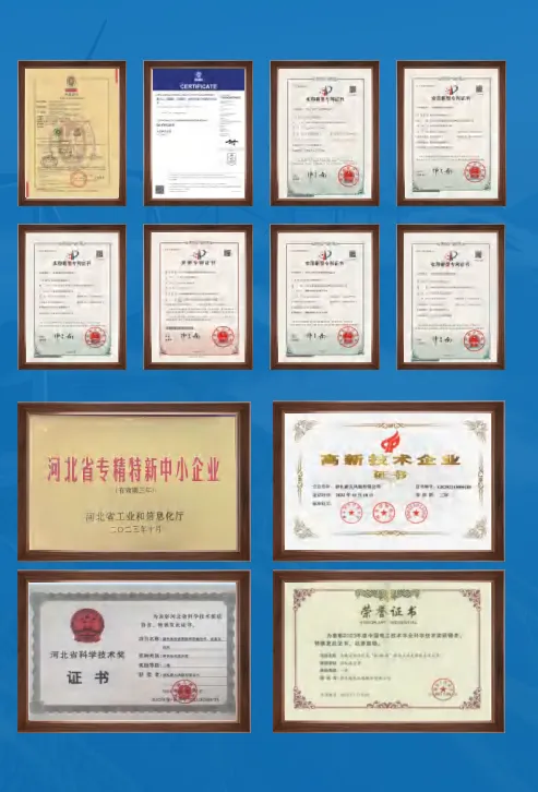 公司的研发实力与行业贡献已获得专利、标准与奖项的多重认证,技术实力处于行业领先地位。截至目前,公司已获得45项授权专利,参与制定3项国家标准和3项团队标准,承担23项研发项目和3项政府课题,取得11项新技术/新工艺成果和3项重大科技成果转化。其中一项成果荣获2020年度河北省科技进步二等奖,经鉴定达到"国际先进"水平。