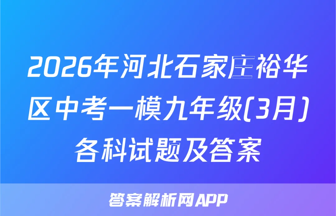 2026年河北石家庄裕华区中考一模九年级(3月)各科试题及答案,答案解析网已经更新了2026年河北石家庄裕华区中考一模九年级(3月)各科试题及答案