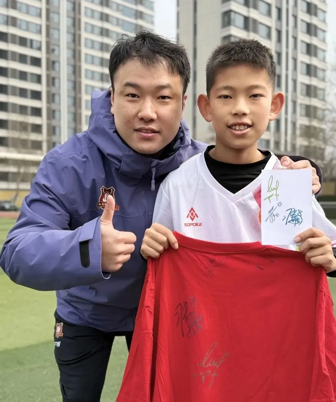 小球员们纷纷围着喜欢的福美球员求合影、要签名,教练员和队员们也一一满足孩子们的心愿,耐心互动。孩子们在欢声笑语中完成了与职业足球俱乐部的近距离接触,心中的足球种子也在这一刻悄然发芽。
