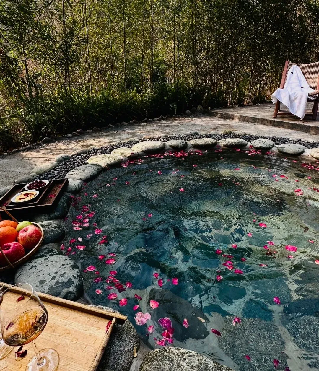 春日泡汤推荐:选一处临花汤池,看着窗外漫山桃花、杏花,泡在温热的泉水中,雾气缭绕,春风拂面,把一周的疲惫和烦恼全都泡走,不管是亲子家庭、情侣,还是中老年朋友,都能在这里找到专属的惬意。