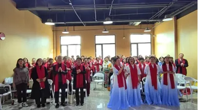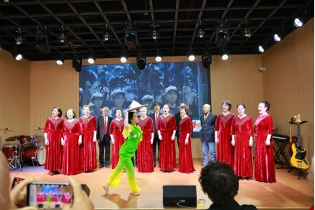 文艺展演环节成为本次仪式的高光时刻,10个精彩节目依次上演,各区域组、专项工作组各展所长,现场掌声与喝彩声此起彼伏。指挥组双习宁、何雯雯的男女声二重唱《开门红》为展演拉开序幕,长安区组《爱中华》唱出赤子情怀,桥西区组《相逢是首歌》诉说相聚美好,安全组《又见炊烟》勾勒温柔乡愁,市直组田彦龙男声独唱《敢问路在何方》激昂豪迈,新华区组《军民团结一家亲》致敬长征精神、《清晨我们踏上小道》展现银龄风采,裕华区组、栾城区组女声小合唱《这世界那么多人》深情诠释团结合作的珍贵,演出组赵惠锁《五湖四海》唱出同心聚力的信念,市直组《唱支山歌给党听》抒发对党的赤诚热爱。最后,全体团员齐声合唱《相亲相爱》,熟悉的旋律、真挚的情感,将现场氛围推向最高潮,尽显“老校长合唱团”“聚是一团火”的精气神。