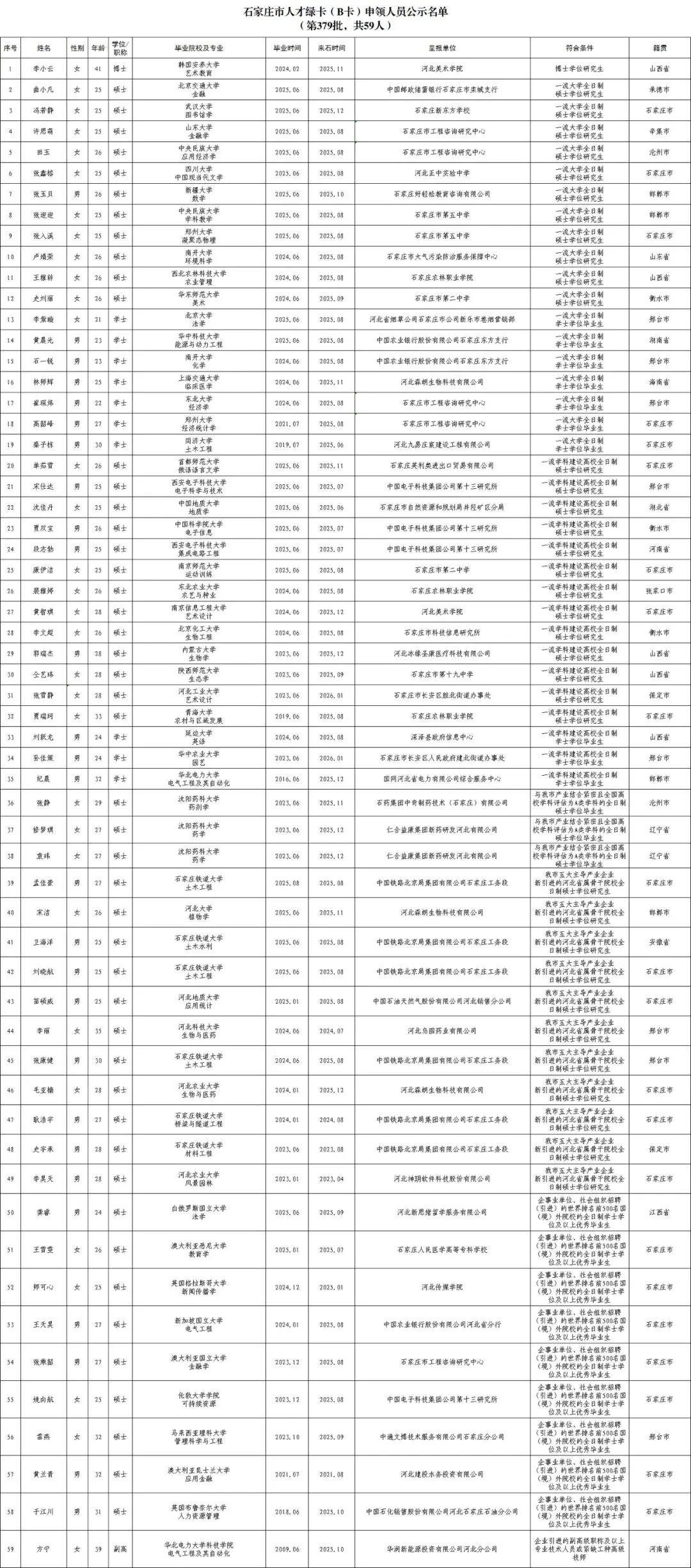 根据《石家庄市人才绿卡(B卡)管理办法(试行)》规定,经过本人申请、网上预审、单位审核、资格复审,拟为申请对象发放人才绿卡(B卡)。