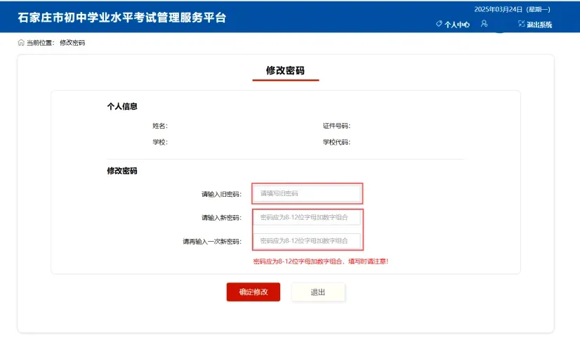 进入修改密码界面后,需要填写【旧密码:身份证后八位】和【新密码】,注意不要向任何人透露密码,密码在志愿填报时也会使用。