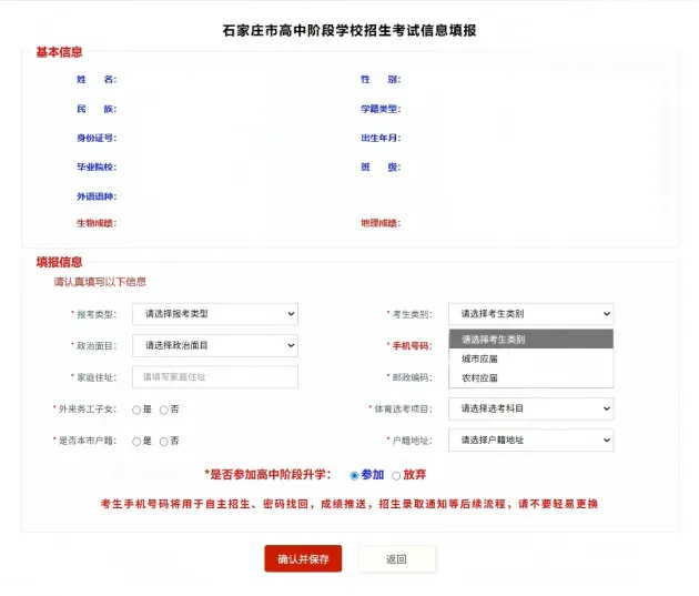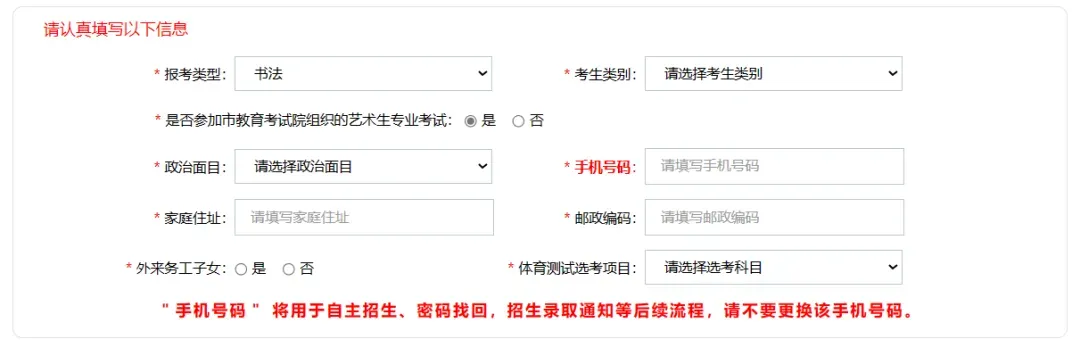 注意:考生手机号码将用于自主招生、密码找回,招生录取通知等后续流程,请不要轻易更换