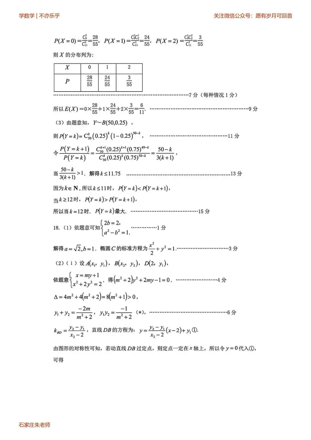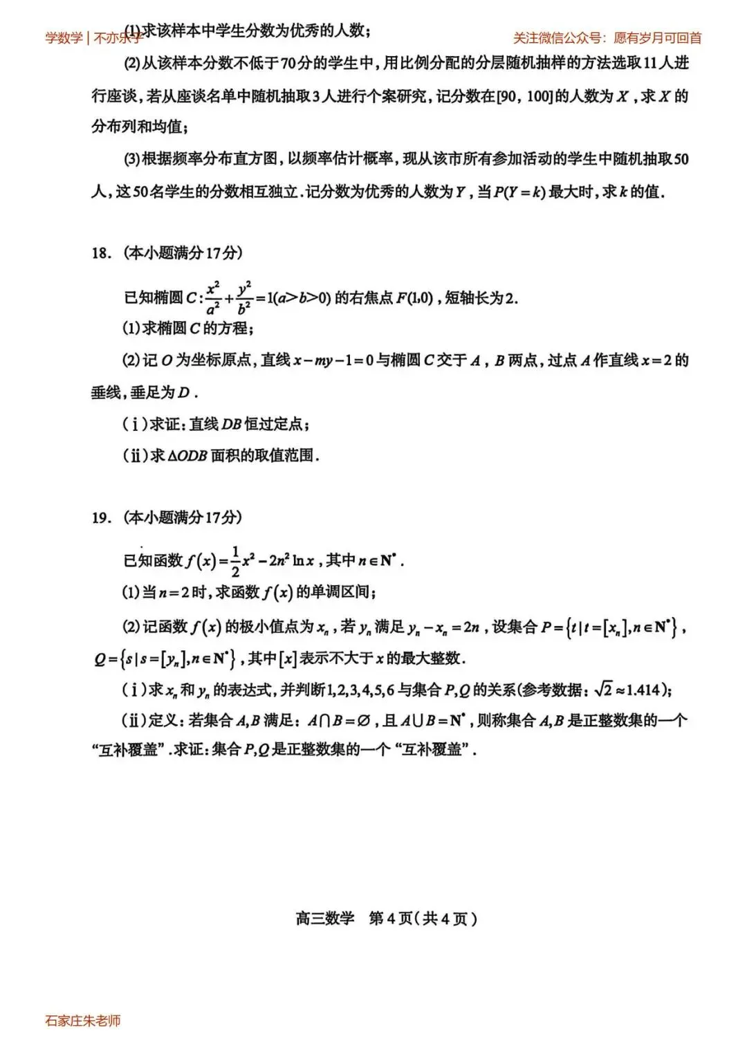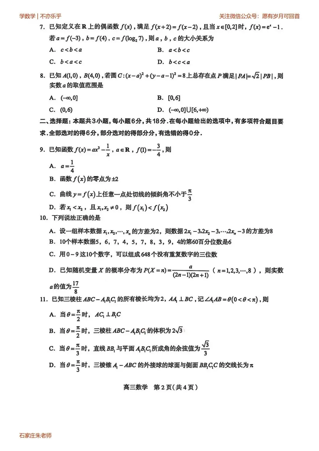 石家庄一模高三数学试卷(2026年3月)