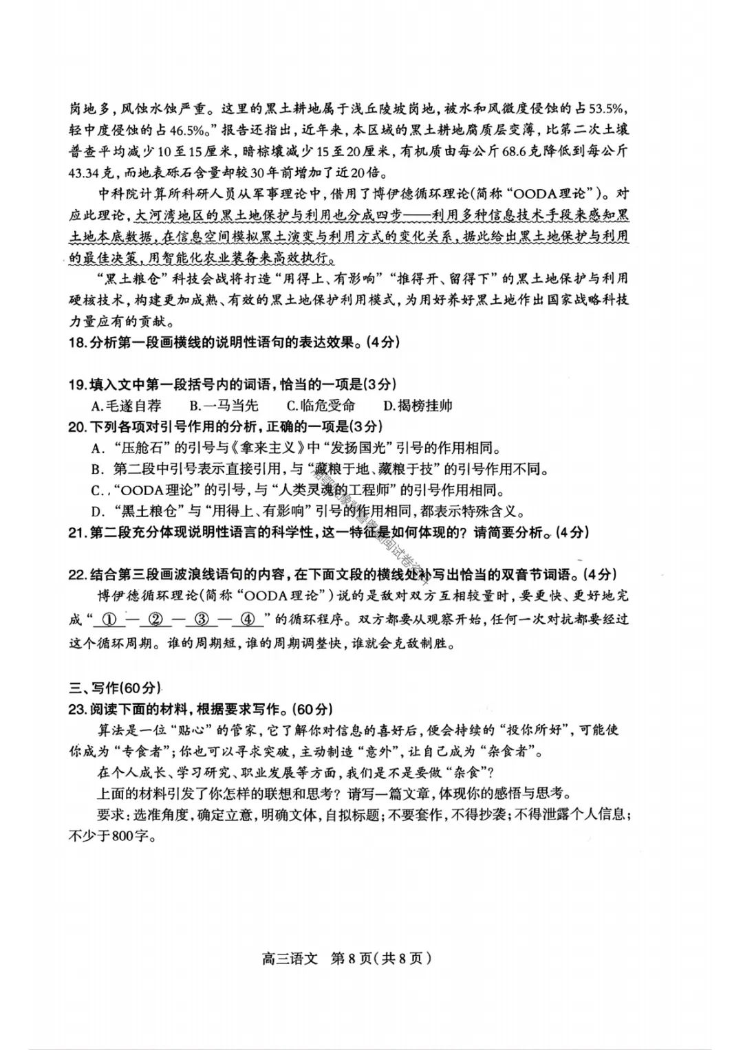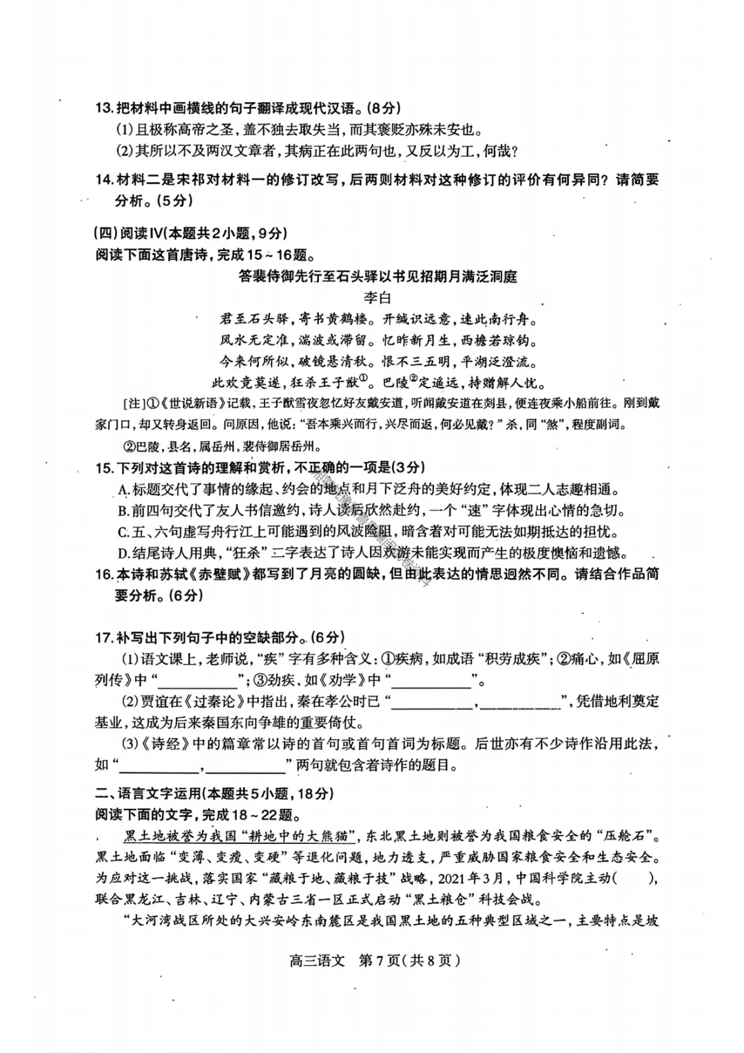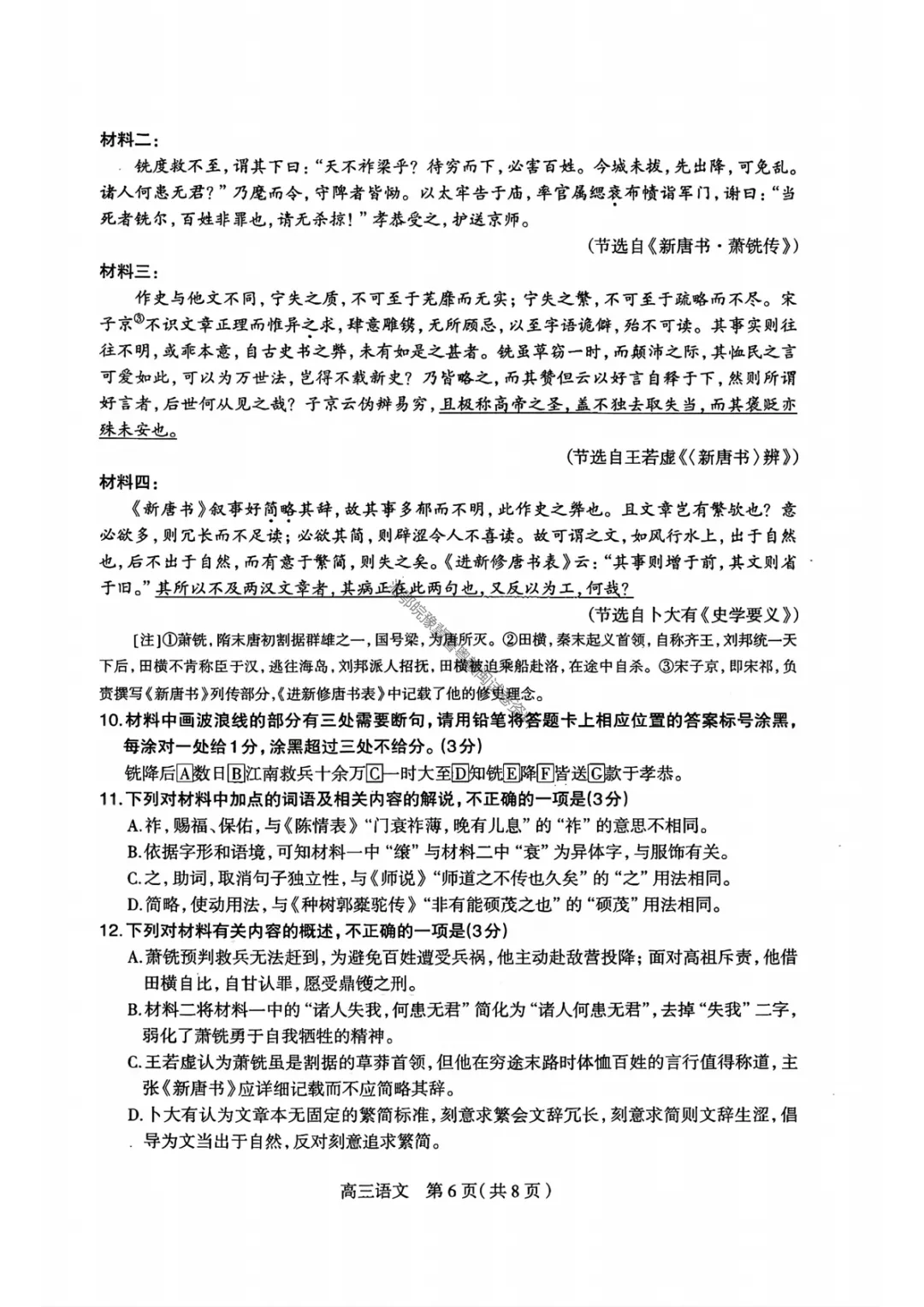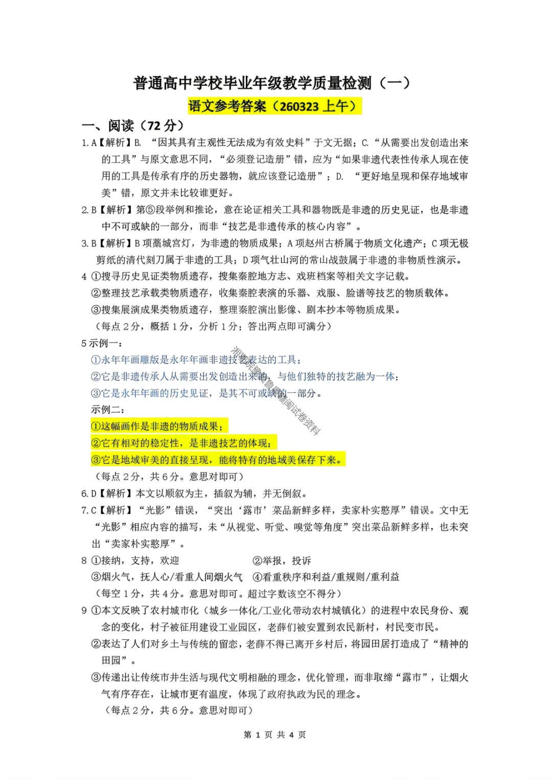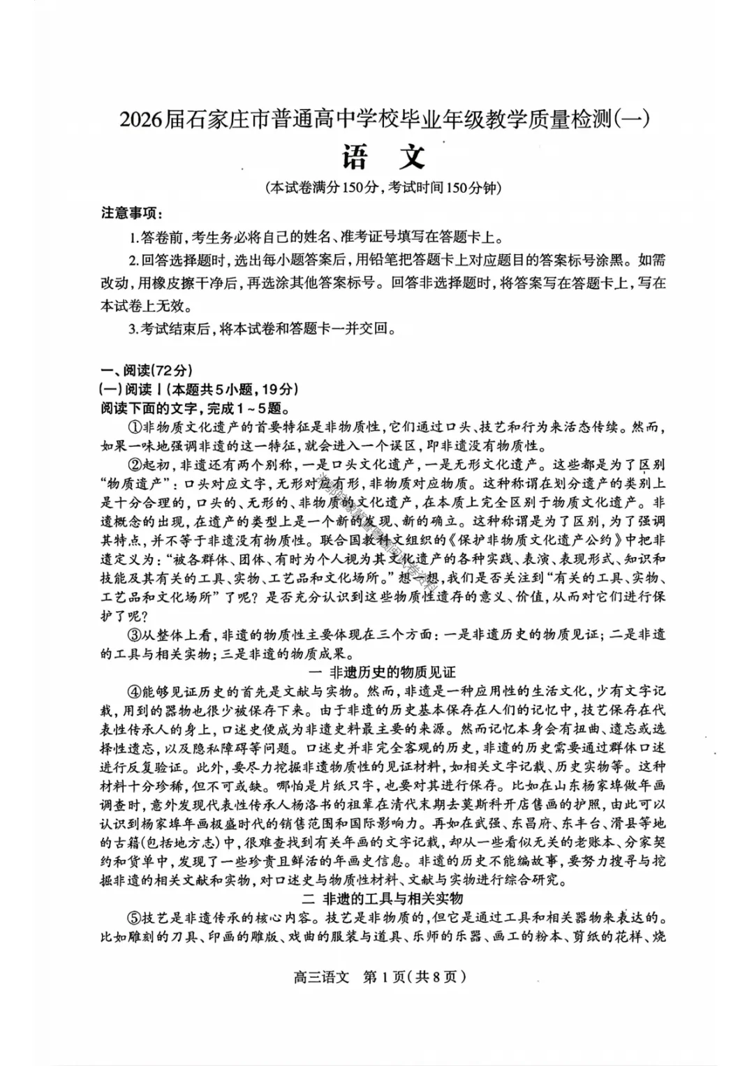 【石家庄一模语文】2026届石家庄市普通高中学校毕业年级教学质量检测(一)试卷答案