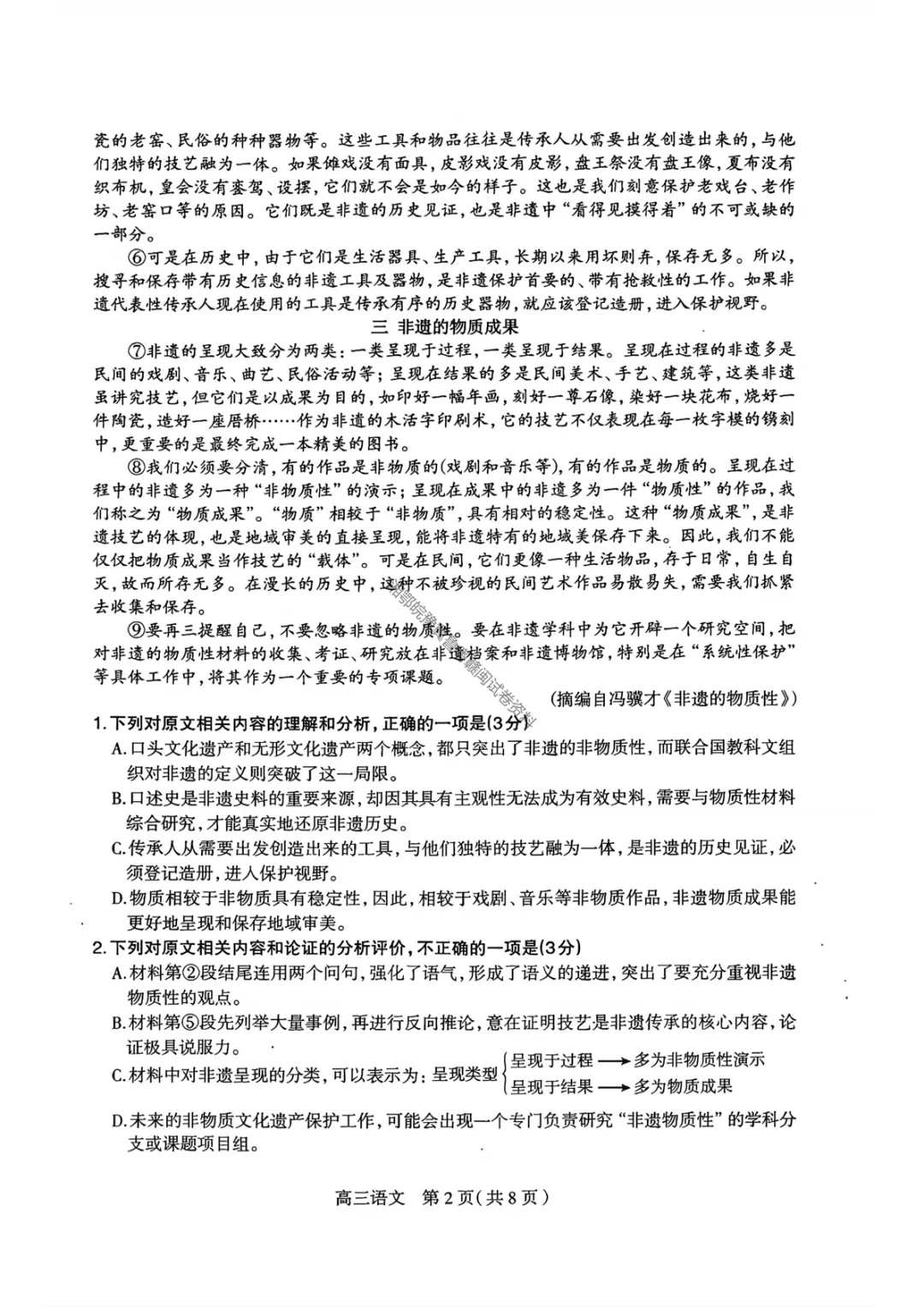 >【石家庄一模语文】2026届石家庄市普通高中学校毕业年级教学质量检测(一)试卷答案