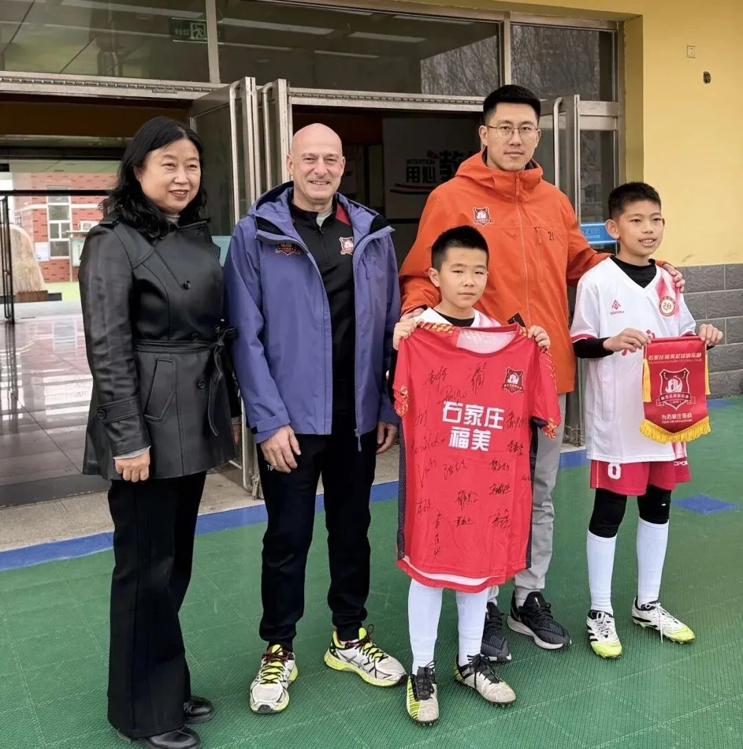 2026年3月23日,石家庄福美足球俱乐部常务副总冯维和主教练蒂诺·佩雷斯带队走进石家庄市裕华区二十里铺小学,开展五人制足球进校园活动,同时出席该校2026年春季校园足球联赛开幕仪式,让职业足球的魅力走进校园,为孩子们的足球梦想添彩。石家庄市裕华区二十里铺小学是裕华区公办义务教育阶段优质小学,学校位于裕华区二十里铺村槐中路,学校坚持以优质基础教育为核心,同时深耕体育特色教育,尤其重视校园足球的普及与发展,让学生在文化课学习之余,能通过体育运动强健体魄、锤炼意志。多年来,学校秉持全面育人的办学理念,将体育教育融入日常教学,以足球特色为抓手,打造活力校园,为学生搭建多元化的成长平台,此次春季校园足球联赛的举办,更是学校落实体育育人、推动校园足球发展的重要举措。石家庄福美教练员及球员抵达学校后,受到了师生们的热烈欢迎,队员们一同参与了学校的升旗仪式,感受校园里的朝气与活力。校领导李丽代表学校对福美俱乐部的到来表示热烈欢迎,在讲话中深入阐述了足球教育在学生成长中的重要意义,强调足球运动不仅能锻炼体能,更能培养孩子们的团队协作与拼搏精神,这一观点也得到了石家庄福美主教练蒂诺·佩雷斯的高度认可。双方还进行了友好的礼物互换并合影留念,蒂诺·佩雷斯主教练为学校“石家庄福美足球俱乐部青少年足球菁英人才共育基地” 正式授牌,这一举措标志着双方将在青少年足球人才培养、校园足球课程建设等方面展开深度合作,为学校足球教育注入专业力量。在学校师生的盛情邀请下,石家庄福美足球队的队员们为校园小球员们带来了精彩的球技展示,娴熟的盘带、精准的传球、有力的射门,每一个动作都赢得了孩子们的阵阵欢呼,让大家近距离感受职业足球的专业魅力。开幕式上,蒂诺·佩雷斯主教练为二十里铺小学2026年春季校园足球联赛开球,随着足球划出漂亮的弧线,联赛正式拉开帷幕。作为揭幕战,福美球员还与该校校足球队展开了一场精彩的友谊赛,赛场上,职业球员的专业配合与小球员们的奋勇拼搏相映成趣,赛场下,呐喊声、加油声此起彼伏,整个校园沉浸在欢乐的足球氛围中。活动最后,小球员们纷纷围着喜欢的福美球员求合影、要签名,教练员和队员们也一一满足孩子们的心愿,耐心互动。孩子们在欢声笑语中完成了与职业足球俱乐部的近距离接触,心中的足球种子也在这一刻悄然发芽。————————————————————————