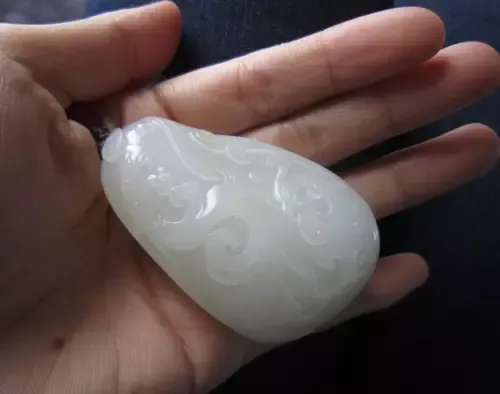 且末产的羊脂玉、糖白玉都有,比较知名的是青白玉,产量很大。这里的糖白玉没有若羌的好,颜色发暗,山料普遍会带有糖色,好的山料是纯白的,只是有一层糖皮。且末的山料产量很大,以前也很便宜,现在价位普遍上涨的很厉害。