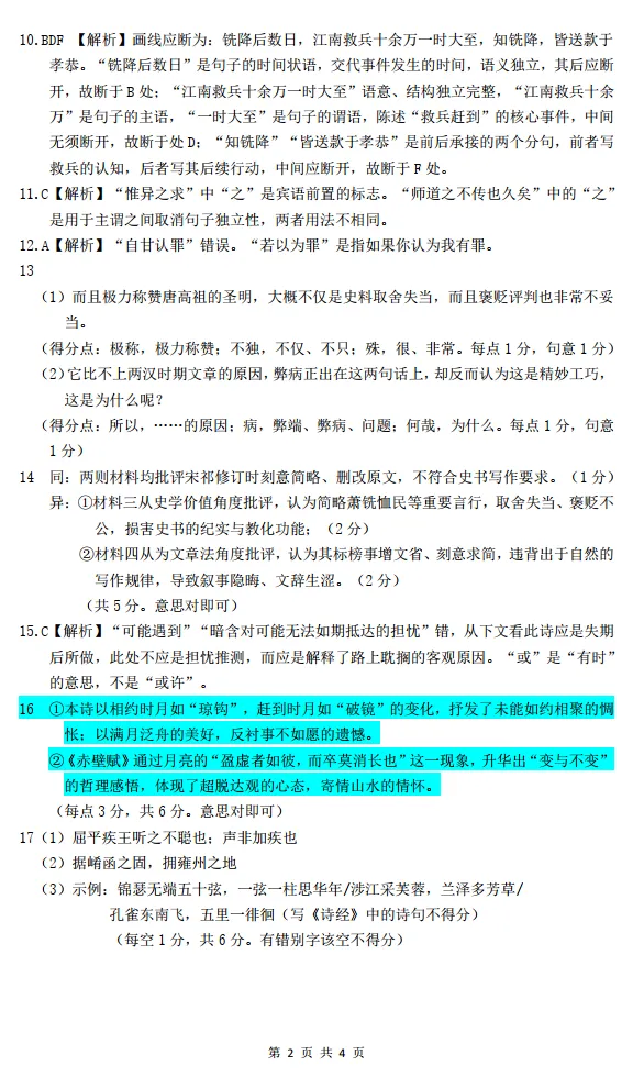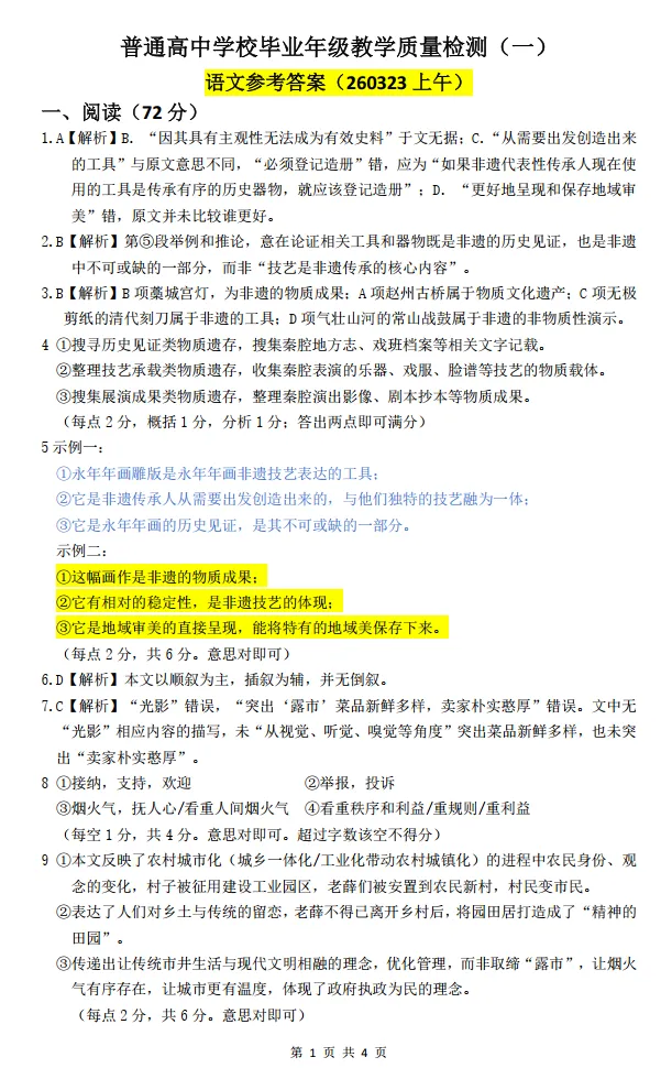【石家庄一模语文】2026届石家庄市普通高中学校毕业年级教学质量检测(一)试卷答案
