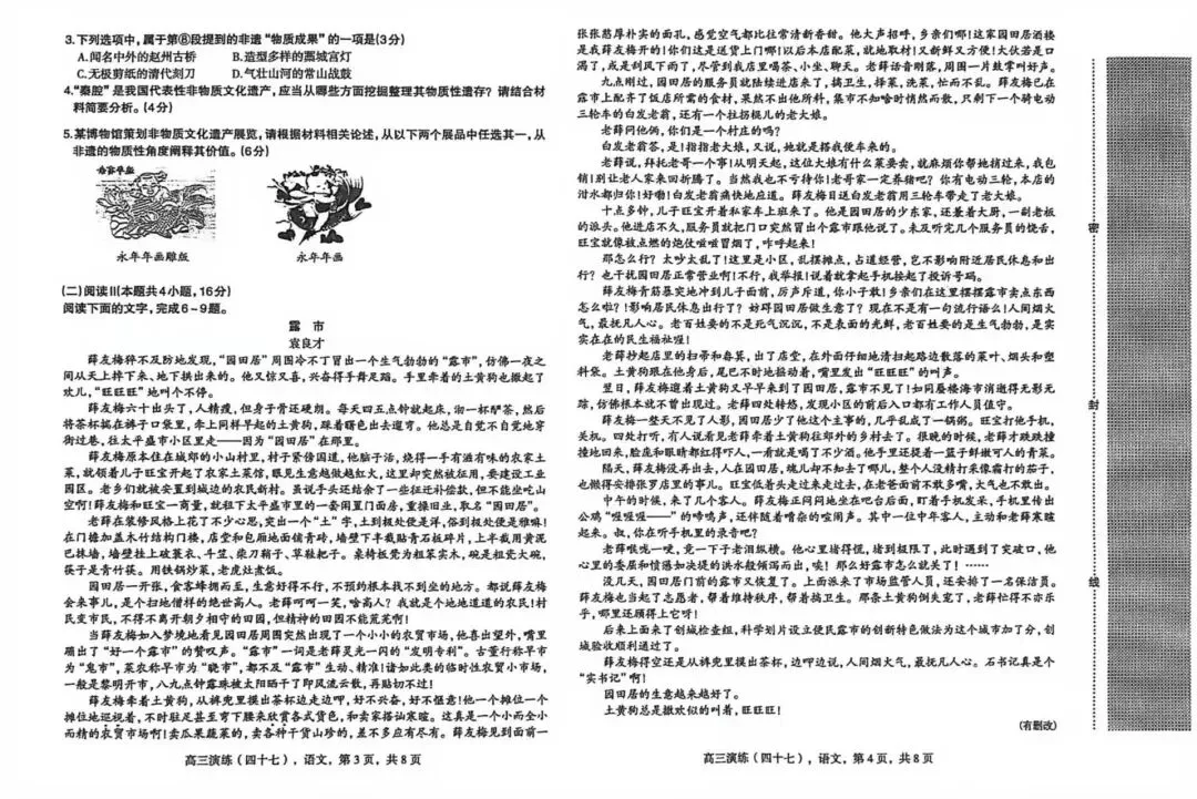 ③搜集展演成果类物质遗存,整理秦腔演出影像、剧本抄本等物质成果。(每点2分,概括1分,分析1分;答出两点即可满分)