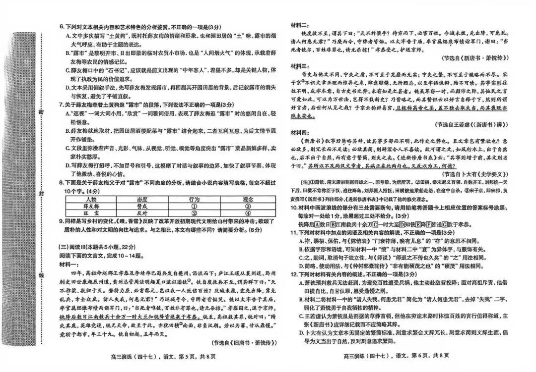 14 同:两则材料均批评宋祁修订时刻意简略、删改原文,不符合史书写作要求。(1分)异:①材料三从史学价值角度批评,认为简略萧铣恤民等重要言行,取舍失当、褒贬不