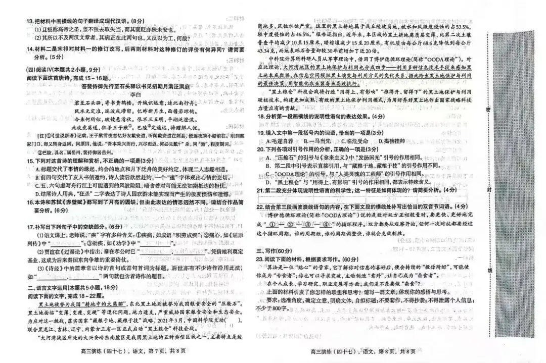 15.C【解析】“可能遇到”“暗含对可能无法如期抵达的担忧”错,从下文看此诗应是失期后所做,此处不应是担忧推测,而应是解释了路上耽搁的客观原因。“或”是“有时”的意思,不是“或许”。
