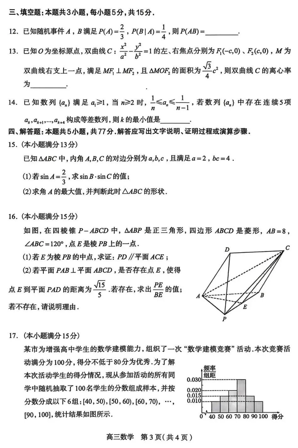 河北省石家庄2026届普通高中学校高三年级教学质量检测一数学试卷及答案