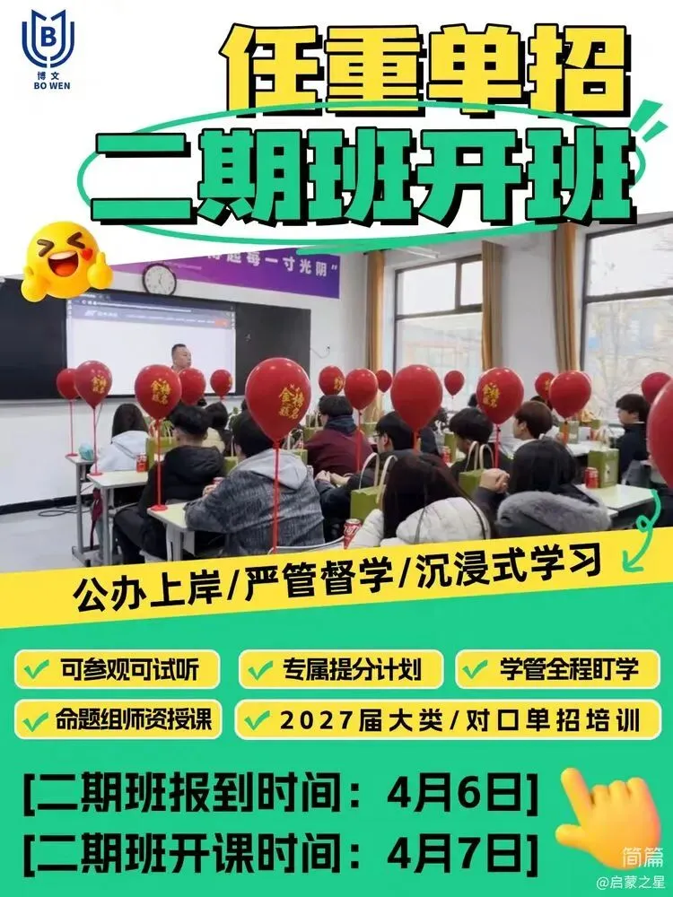 2027年单招备考已进入关键阶段,石家庄任重博文单招项目二期班将于2026年4月6日正式开课,现面向全省初三学生及家长开放预报名。作为专注单招升学的特色项目,我们以扎实的教学成果、严格的管理模式和优质的校园环境,为学生冲刺公办院校保驾护航。