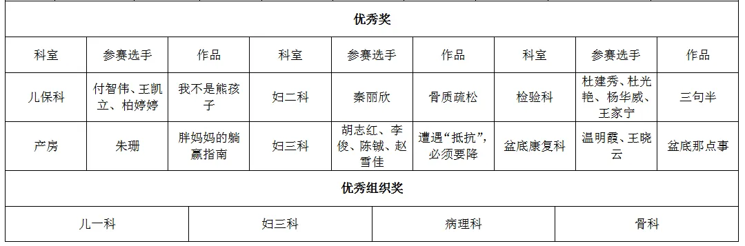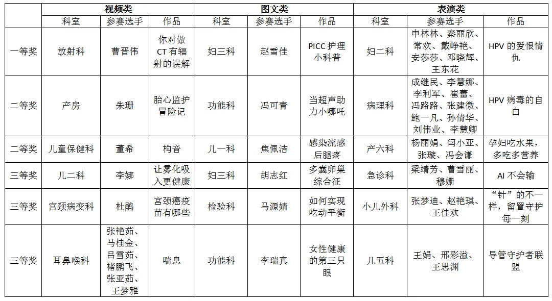 随后,现场举行了隆重的颁奖仪式。各类作品的一等奖、二等奖、三等奖获得者,表演类作品优秀奖得主以及大赛优秀组织奖科室代表纷纷上台领奖,收获属于他们的荣誉与掌声。这些奖项不仅是对参赛者的认可,更是对健康科普工作的激励。