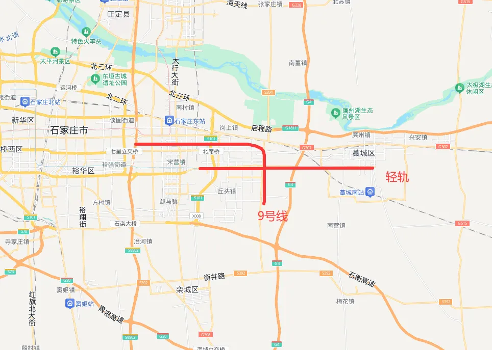 因此,官方规划中给藁城的“良配”是轻轨(市域郊铁路),而非传统地铁。早在“十四五”规划中,石家庄就明确提出要启动主城区至藁城区的市域(郊)铁路建设。而规划中的地铁9号线,目前只能触及到经开区和化工园区附近的新赵线,想要真正进入藁城核心区,恐怕还需要一段时间的等待。
